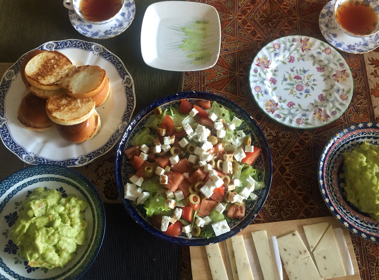 9. 아보카도 과카몰리 해오면서 토마토 가져오길 잘했지. 페타치즈와 올리브 양상추가 있다기에 바로 샐러드. 왜 K의 집에 오면 무수리 모드로 바뀔까. K의 찻잔과 그릇 수집 취미 덕에 곧바로 호사로운 토요일 점심