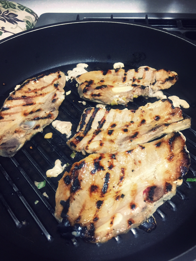 26. 돼지 앞다리살은 가장 소박하고 든든하다. 소금후추매실청설탕생강간장올리브유에 한 시간 정도 재웠다가 구웠다. 마늘과 양파도 같아 구웠는데 더 넉넉히 넣을걸. 감자는 오븐에 구웠다. 옆지기가 외출한 덕에 남았다.