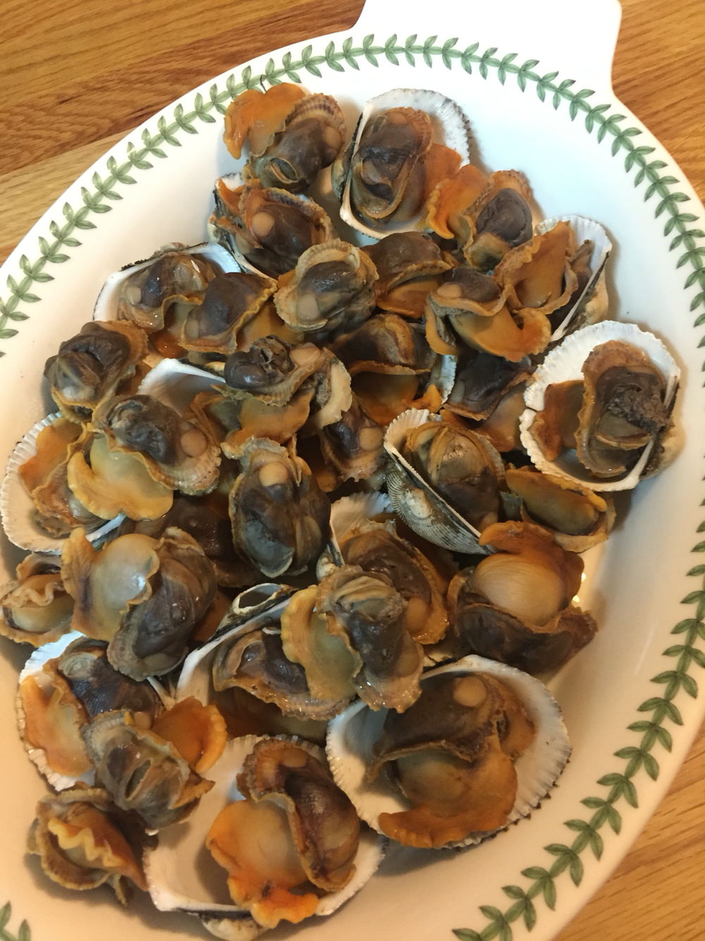 21. 피조개 2kg 9980원. 철수세미로 하나하나 박박 문질러 옆지기가 씻었다. 아마 다시 사는걸 환영하지 않을듯. 소금물에 해감하고 여러번 씼었지만 삶을 때도 손이 간다. 살살 흔들어 하나씩 건졌다. 맛은 훌륭