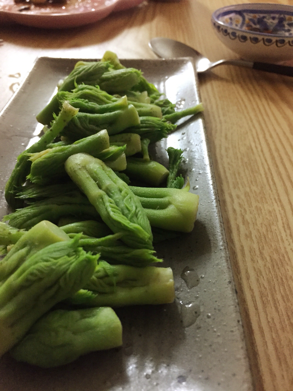 35. J네 집에 몇 모였다는 소식에 애들 저녁 차려준뒤 합류. 딸기 사러 마트 들렸는데 전복과 문어가 세일하길래 전복은 마늘과 살짝 볶고. J가 준비한 두릅초회 굿. 개표방송 보다보니 무알콜 맥주인데 목소리 커진다