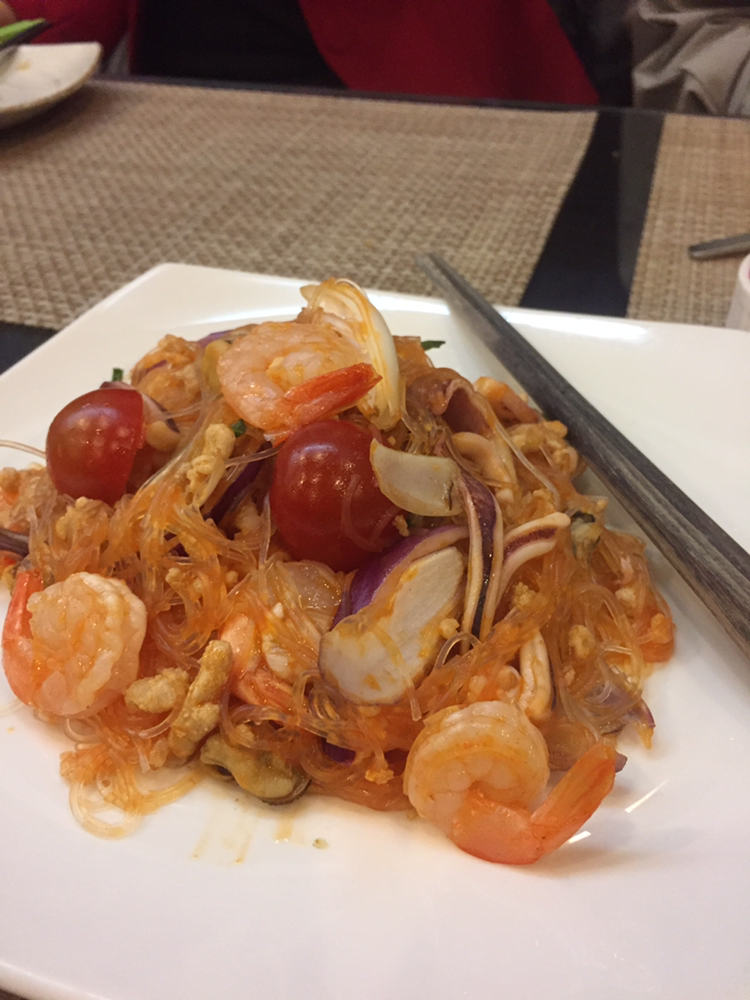 41. 얌운센 샐러드(0.9), 볶은국수 팟타이(1.1) 소프트크랩 푸팟퐁가리(2.4), 돼지고기 바질볶음과 밥(1.8) 이것저것 푸짐하게 주문하고 열두명이 와인 두 병 마셨는데 김영란법 준수. 결국 Y쌤이 쏘셨다. 20년 된 여학생 모임. 광화문 아로이타이