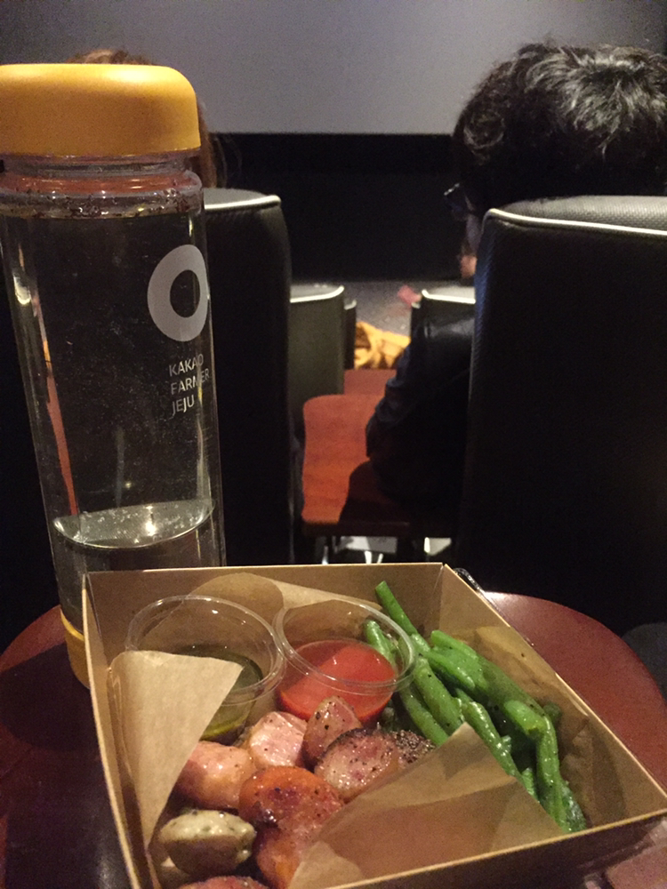 15. 소세지와 프렌치빈. 9000원 치고는 좀 소박한 것 아닌가. 극장 좌석에서 먹을 수 있도록 해줬다지만, 티켓도 1.2만원이었는데. 작심하고 차까지 싸들고 와놓고 굳이 나홀로 점심 챙겨먹겠다고 식탐 부리다가 다소 당황. 메가박스 코엑스 컴포트룸