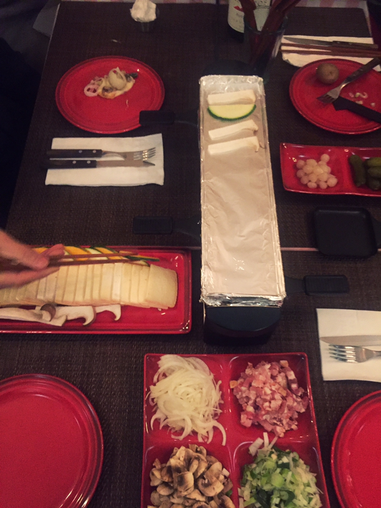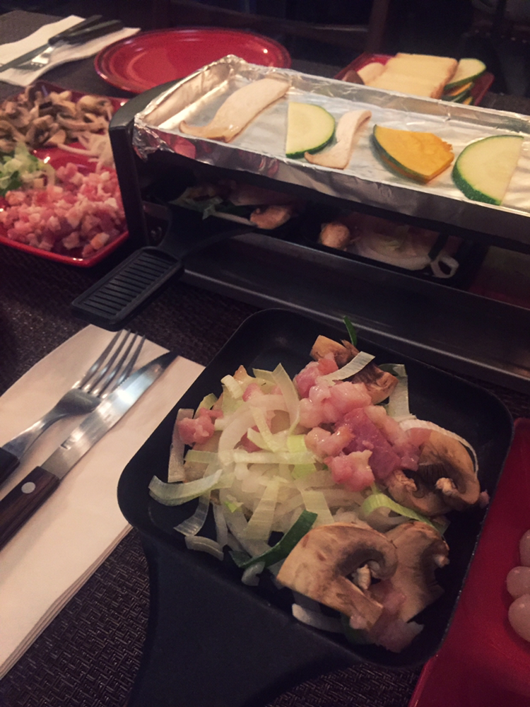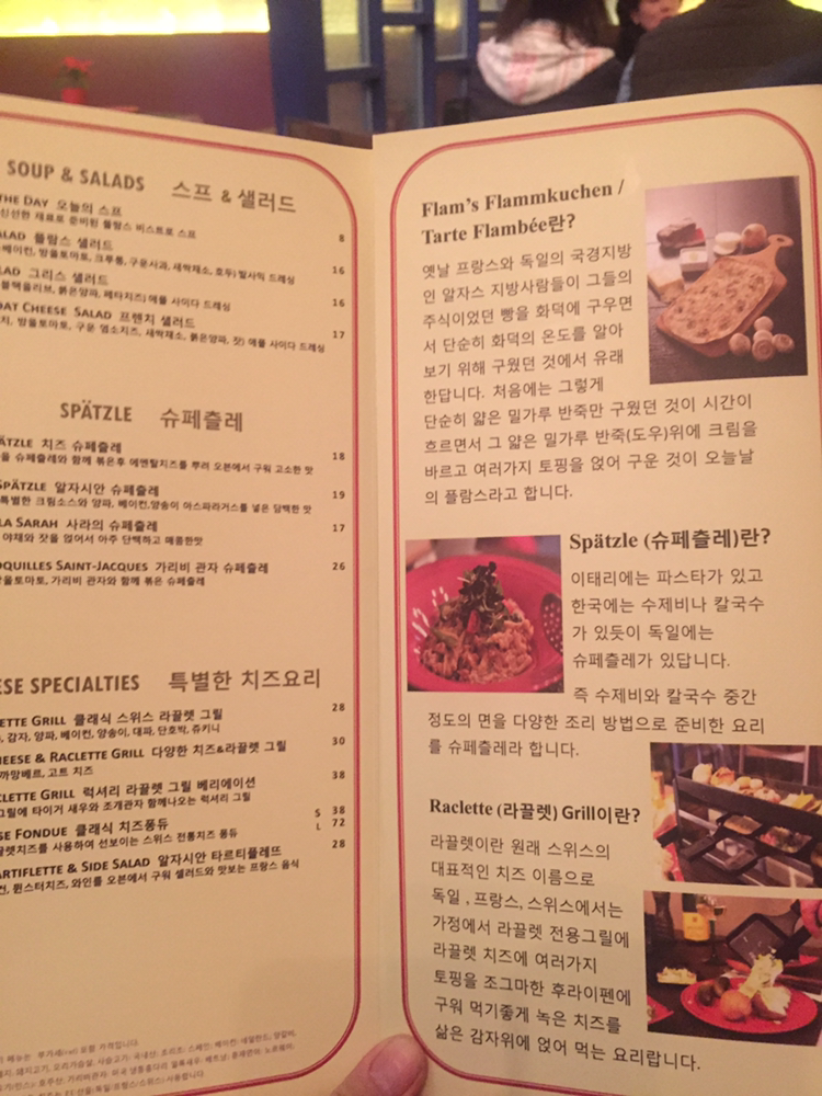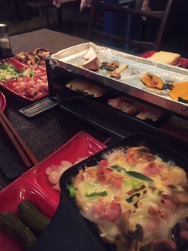6. 작은 1인용 팬에 치즈를 깔고 베이컨 버섯 양파 대파를 올린뒤 전용 그릴에. 치즈가 노릇 구워질때까지 기다리는데 인내심이 필요. 대화가 늘어나는 순기능을 즐기려면 좋은 친구들과 가면 된다. 스위스 요리 라끌렛과 독일 집밥 하는 서초동 플람스 비스트로
