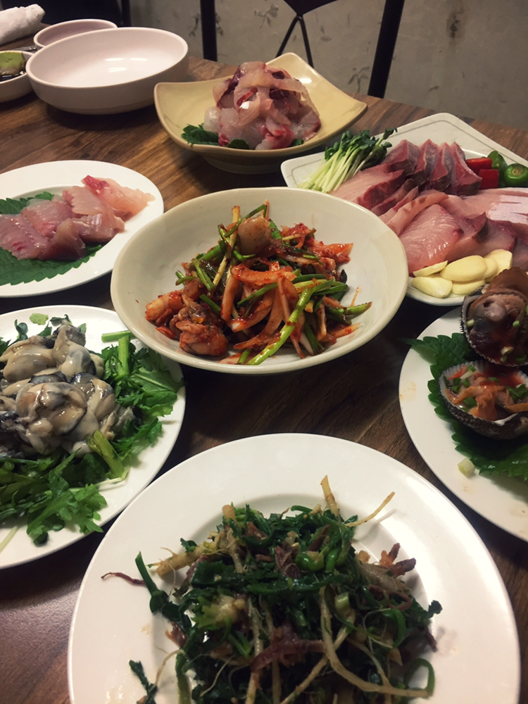 12. 허름한 입구에서는 상상 못할 식당. 가정집 작은 방들이 이어지고 상태 좋은 해물만 계속 나온다. 굴과 피조개, 아구간, 낙지 애호 확인 와중에 냉이 무침에 감동해 처묵. 영란법 지키려면 점심만 가능. 우사인볼트주라는 폭탄 학습. 예술의전당 앞 복있는집