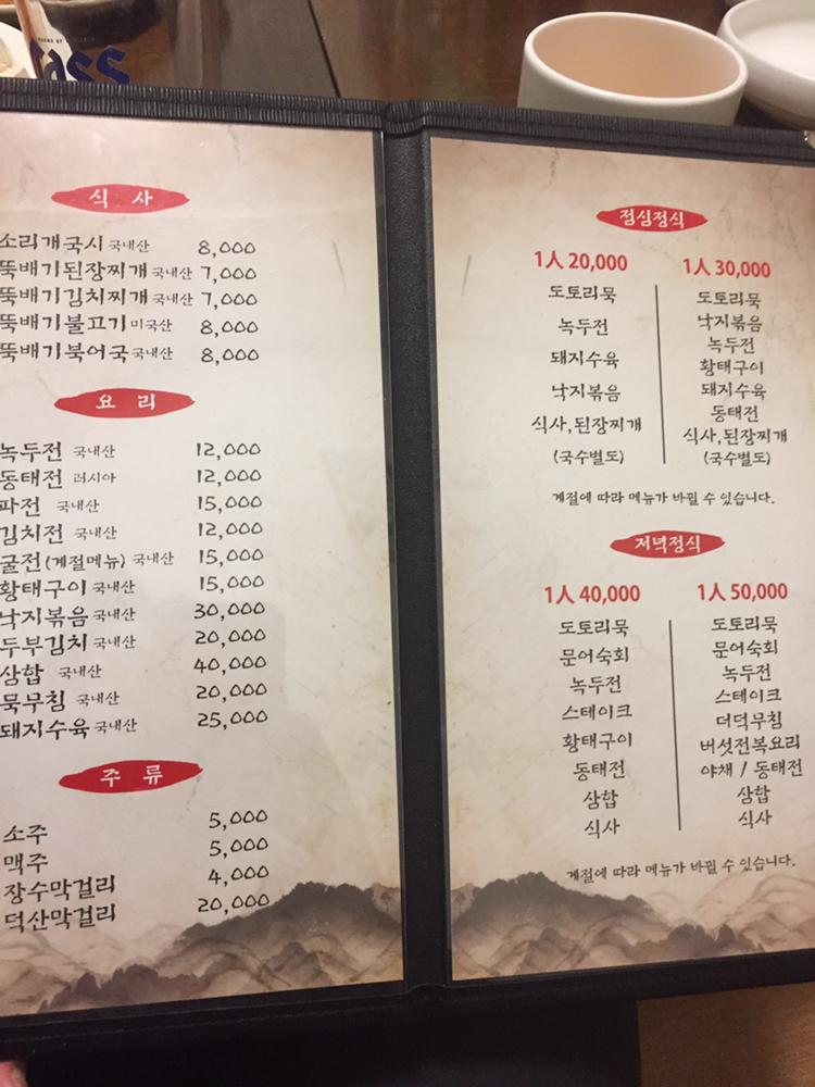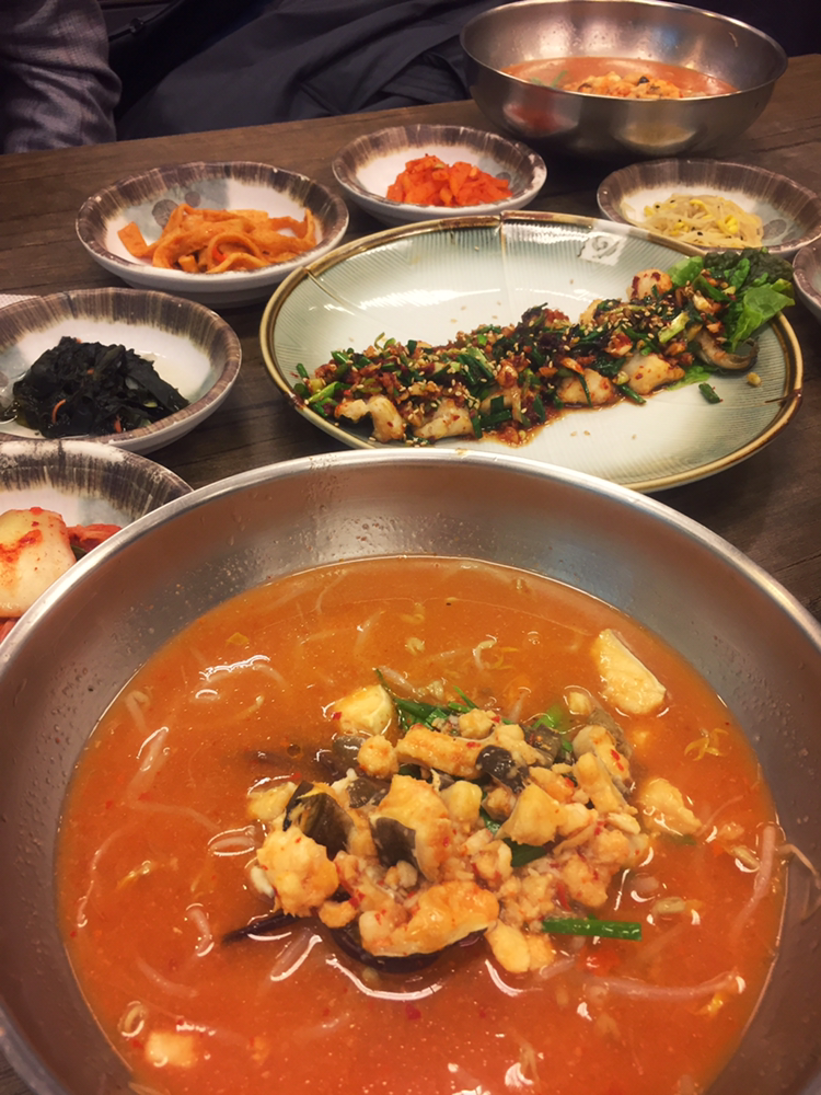 20. 늦게 갔지만 일행들이 죽과 들깨버섯탕, 샐러드를 따로 챙겨놓았고. 녹두닭, 황태구이, 낙지파전 등 괜찮은 안주가 즐비했다. 마지막이 황태국이라 음주와 해장을 동시에. 8명 방이 있어 편했는데, 코스 2만원. 식혜와 떡 안나온듯. 봉은사역 진부령황태명가