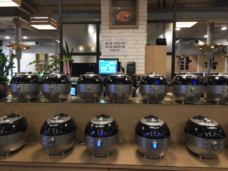 46. 엄마 생일이라고 미역국 잘하는집. 돼지갈비 250g 1.5만원인데 부드럽고 달달. ㅂㅍㅇ 스타일인데 반값. 반찬도 훨 좋다. 평냉도 만족. 줄 지은 작은 압력솥에서 갓 지은 밥을 바로 퍼준다. 미역국도 종류별로 있던데 밥맛이 더 기대되는 도곡동 청담옥
