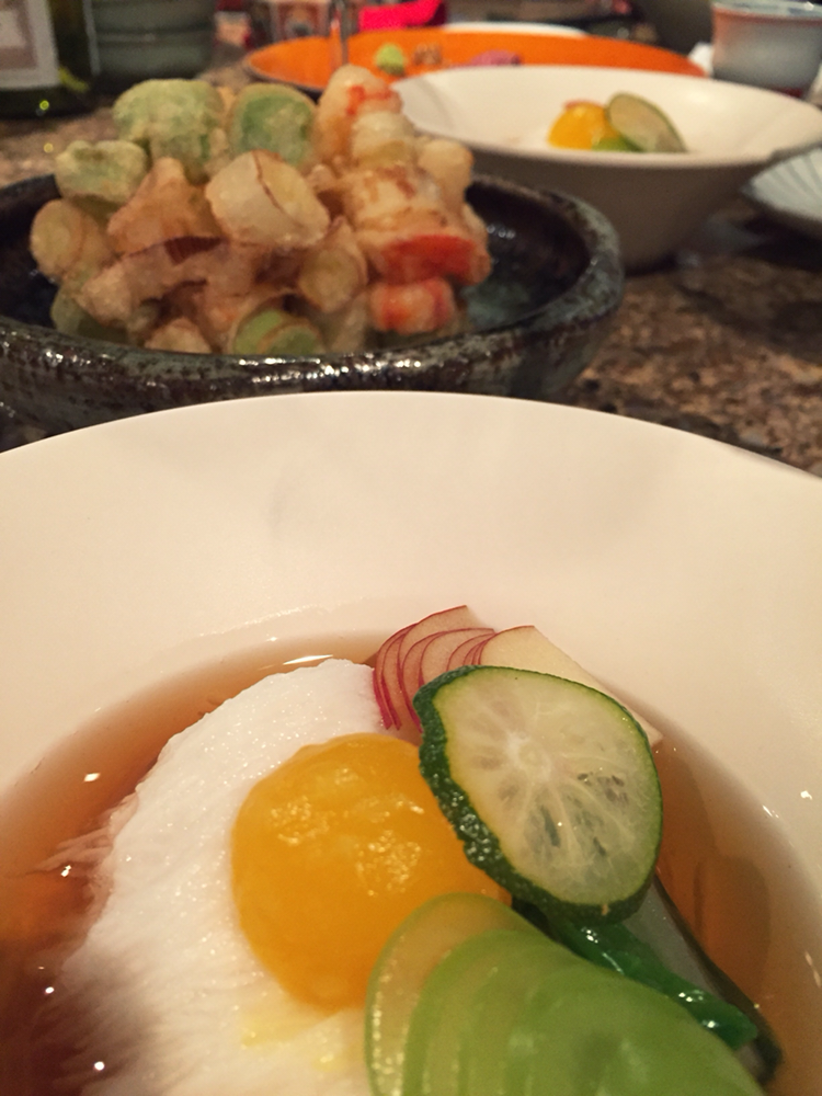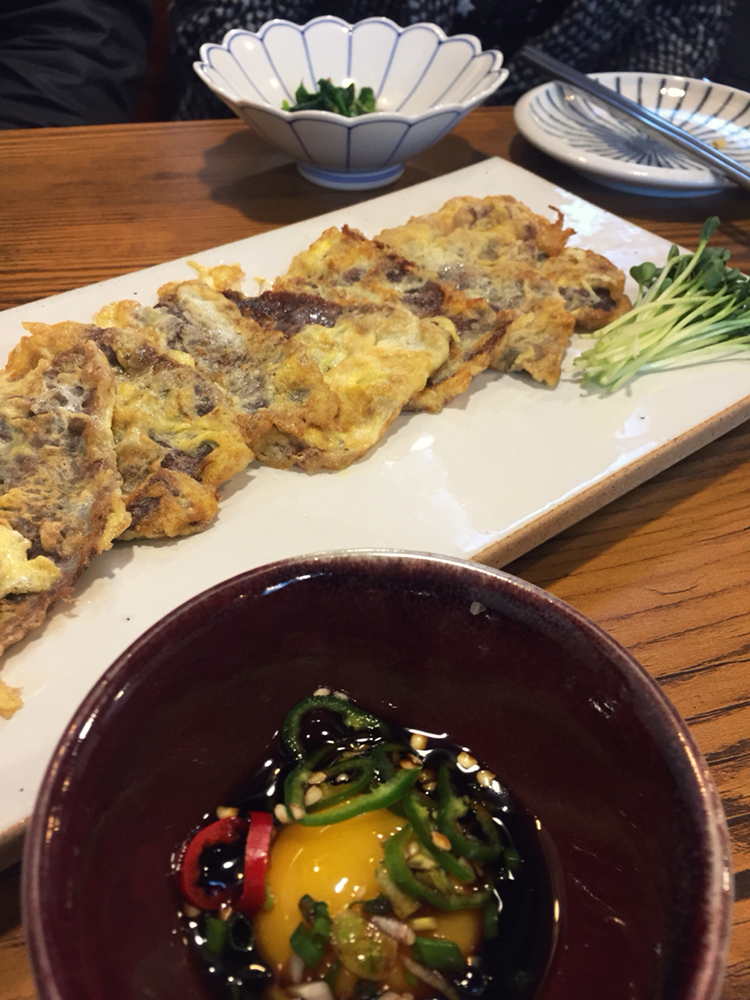 58. 고작 일주일 전인데. 별 별 일들이 이어져서 한 7주는 지난듯한 기분. 자연스럽게 마음이 이어지는 님들과 편안하고 유쾌하게. 잊지 못할 기억 한 토막 더 남기고. 작은 접시의 가지 구이와 마 국수, 파 튀김 모두 짱 #2017그겨울밤 #모국정서