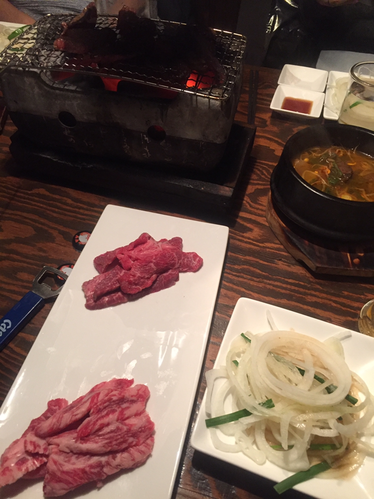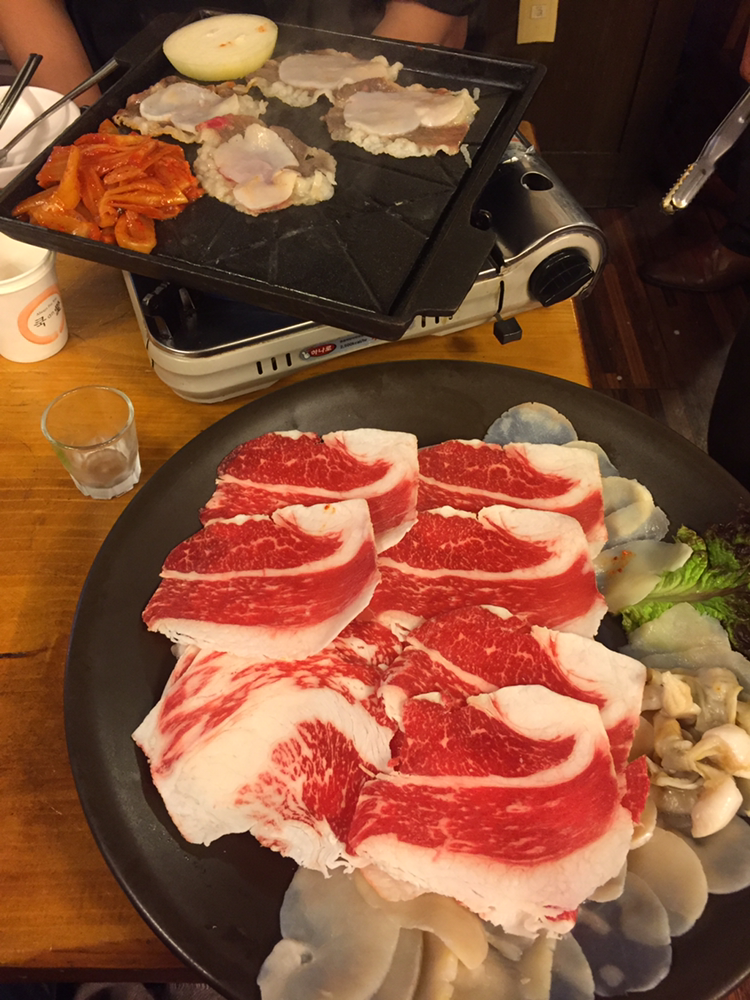 9. 회식은 역시 쇠고기. 부르짖으며 오버한 끝에 뭔가 보쓰의 허락을 받아내는데 성공한 회식. 작은 화로에 고기를 부지런히 구워야 한다. 그래도 작은 방에서 도란도란 먹기엔 괜찮은듯. 이 멤버로는 6개월 만인데 더 자주 봐야했지 싶다. 판교 이야기둘