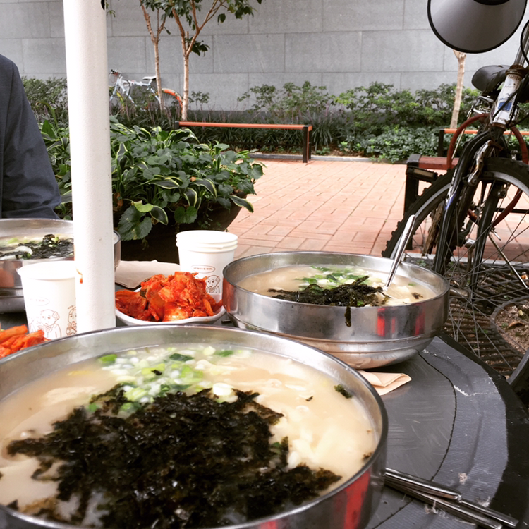 55. 옥상 술집, 테라스 카페 대신 뒷골목 칼국수집. 짧은 계절의 의식을 이렇게 치렀다. 할머니 할아버지 두 분이 국수를 밀고, 무거운 쟁반을 나른다. 쮸쮸바맛 푸짐 딸기 스무디도 놓치지 말 것 #통의동맛집 #사랑방칼국수 #먹방트윗하고파
