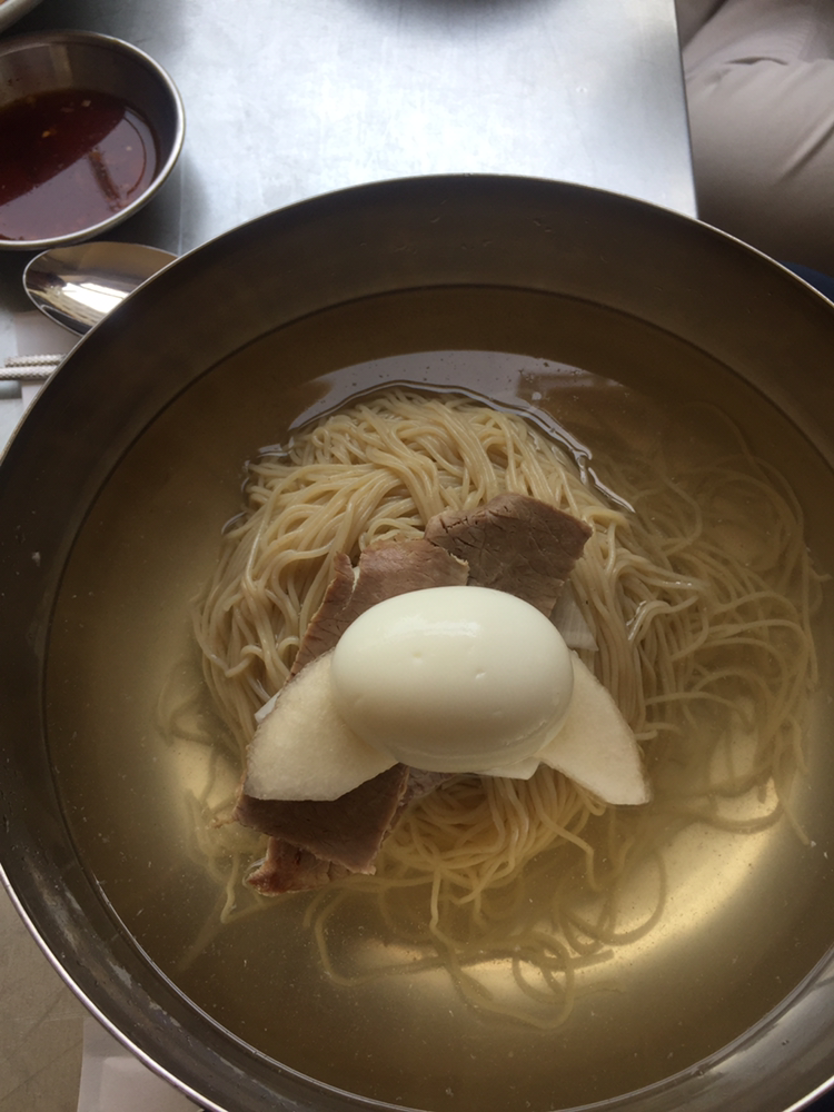 42. 11:32 자리를 잡았고, 34분쯤 만석. 줄 서더라.돼지국밥 특(1.1만)에는 고기가 넘나 푸짐. 담엔 보통 해야지. 흑돼지 살코기만으로 냈다는 국물이 맑고 담백한데 흡족. 밥은 꼬들해 말아야. 평양냉면(9500) 슴슴하다고. 박찬일셰프의 광화문국밥