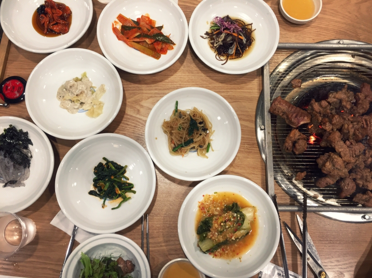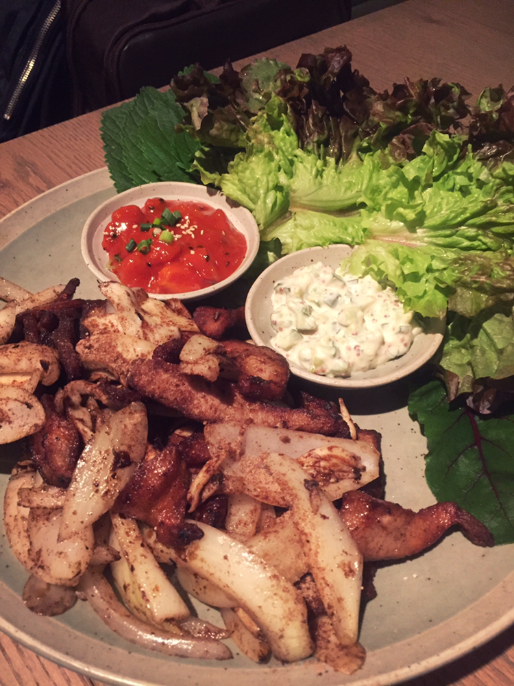 7. 마당이 좋아 날 좋으면 와보고 싶은 집. 샐러드 뷔페를 실하게 담았는데. 돼지고기 플래터(인당 2.9만원)를 주문하면 고기가 무한리필 되는지 몰랐다. 토치로 불맛도 내주시고. 과식하기 좋은 집. 이날은 이야기 만으로도 배가 불렀다. 한남동 웨이베터