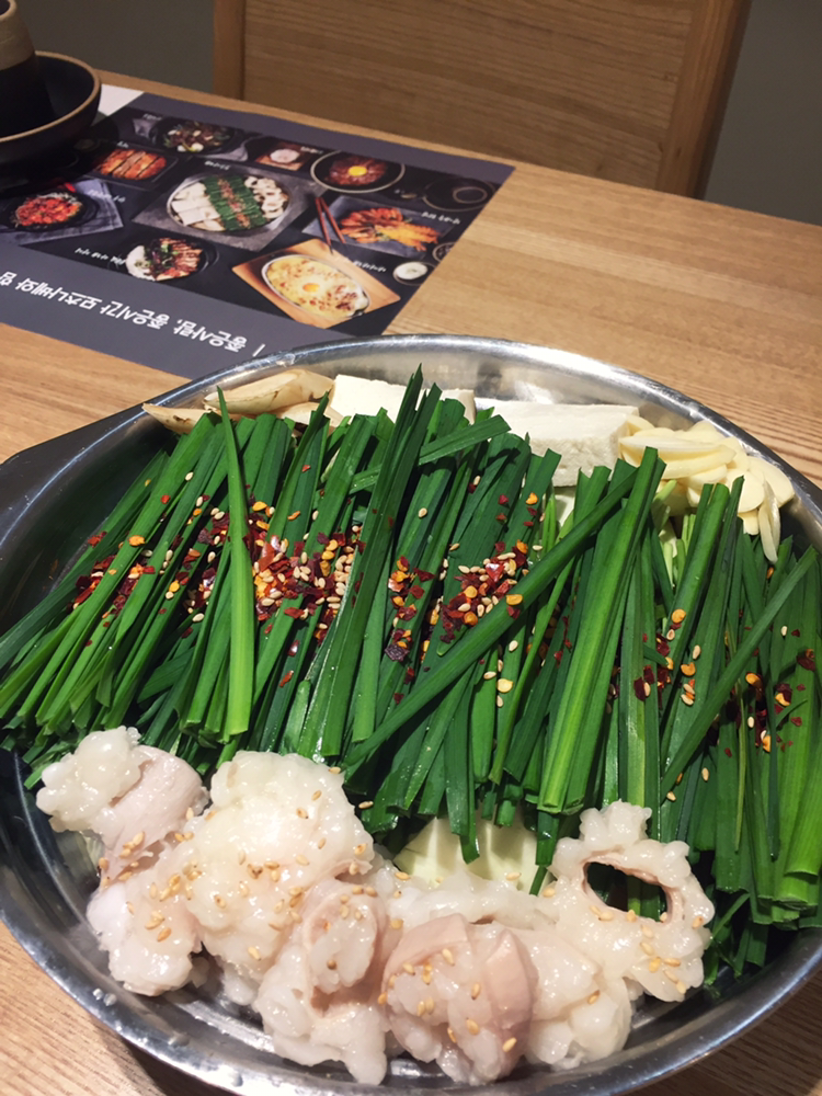 44. 드디어 모츠나베. 소짜(2.1만) 결코 적지 않다. 부추와 양배추, 대창은 잘어울리고 육수가 끝내준다. 매콤하고 달큰한 모츠야끼니꾸 중짜(3.6만)는 가성비 끝내주는 안주. 깔끔한 분위기에 조용한 독방! 점심 단품도 괜찮을듯 #후쿠오카모츠나베 강남역점