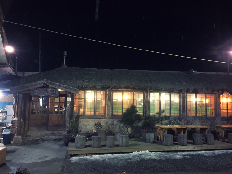14. 사무실서 10분인데 밤에 보니 시골 분위기. 직접 담그는 장맛에 무제한 신선야채. 반찬도 맘에들고 꽤 괜찮은 한우 1등급 등심 500g 5.2만원, 착하기까지. 캘린더에 '기다려지는 모임'이라고 썼는데 눈발 날리고 즐거운 밤이었다. 청계산 방향 초가집
