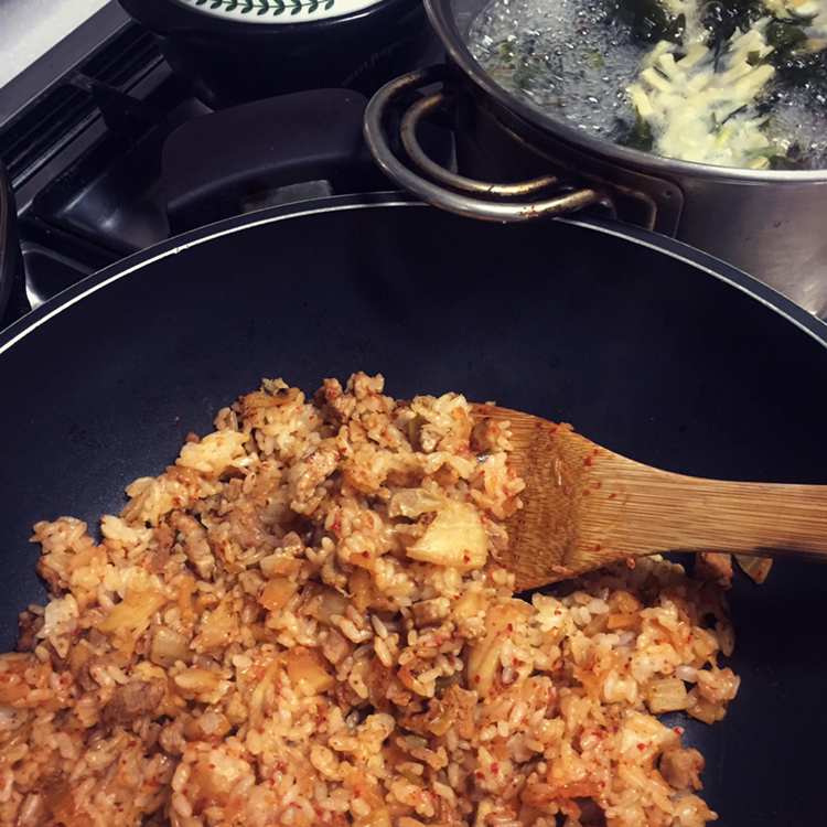 17. 일요일 아침은 김치볶음밥. 언제 해봤는지 기억도 안나는 특별 메뉴입니다. 시엄니 김치는 떨어져도 먼저 달라고 하기 쉽지 않고. 사먹는 금치를 볶음밥 재료로 쓰기는 아깝고. 어릴적엔 김치찌개는 물론 김치볶음밥 김치전 김칫국이 흔했는데, 저는 가끔 찌개나 찜 정도만 호사를 누린다는 맘으로ㅎㅎ 이번엔 새 김치를 주문했는데 시엄니가 예고 없이 한 통 주신 덕분에 아낌없이.. #김치볶음밥 #주부놀이 #애들_슬슬_깨워도될까