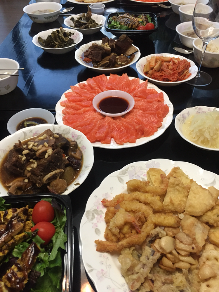 한편 나이든 친정 부모님 두 분이 차리는 상은 몇 년 새 점점 심플해지는 와중에 뭐라도 해오던 여동생은 마마스 샐러드를 가져왔고.