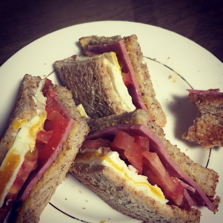 14. 엄마가 늦으면 야밤에 라면을 끓이거나 치킨을 주문하는 아들. 오늘처럼 야근 살짝하고 아이보다 먼저 온 날, 아들이 야식 찾으면 신나게 준비합니다. 날이면 날마다 오는 기회가 아닌지라. 그저께 해준 샌드위치 또 해달라고 주문까지 해주면 영광이죠. 재빨리 무쇠팬을 달구면서 냉동 식빵을 토스트하고. 계란을 부치면서 토마토를 얇게 썰고. 따끈하게 구워진 빵 두 쪽에 각각 마요네즈와 머스터드를 척척 바르고. 햄까지 얹어 덮으면. 볼품은 없어도 그럭저럭. 5분도 안 걸렸고. 먹는 아들에게 잠깐~ 외치고 인증샷. #엄마의_야식 #대충_샌드위치 #엄마보다_잘자는_수험생아들