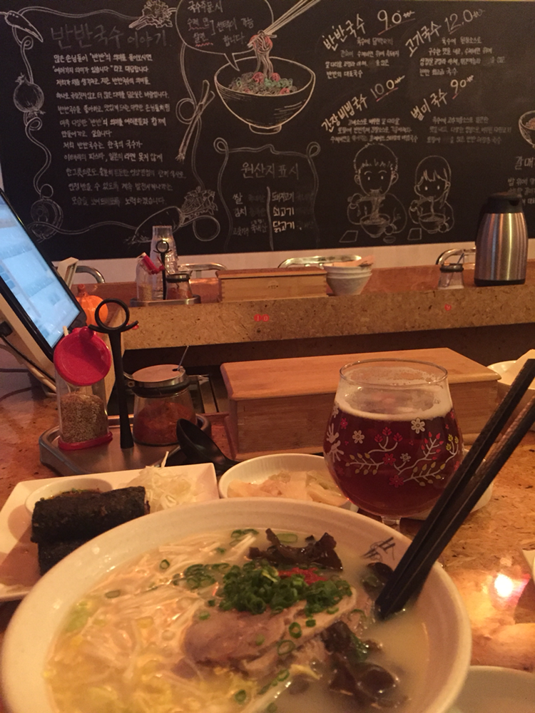 6. 4호선을 타는 K선배와 3호선으로 퇴근하는 우리에게 딱 좋은 곳은 충무로역이었던 것입니다. K선배 소개로 찾은 식당은 딱 내 스타일. 비록 반반국수 육수가 좀 친근한 스타일이긴 했지만, 요모조모 맘에 들었어요. 카운터 테이블 밖에 없어 고개를 계속 옆으로 돌리고 대화하는게 길어지면 힘든데 9:30 음식 마감된 덕분에 가볍게 1차. 미녀 Y가 합류해 여자들의 수다는 한결 더 풍요로왔던 날 #귀한시간 #김선배축하해요 #반반국수