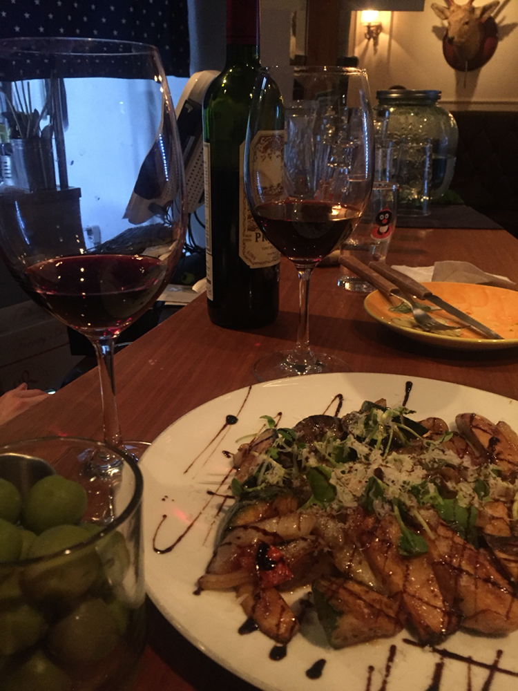 49. #크리스마스이브저녁 #딸아들_함께_와인이라니_흐뭇 #수입살치살_200g_8950원 #가지호박버섯구이_좋아좋아 #고구마_남은갈릭디핑소스처리 #애비는_딴약속을_잡고_두고보자 #로이스_생초콜렛_디저트 #먹여놓으니_각자방으로 #먹방스타그램_계속하고싶은데 #개인적삶