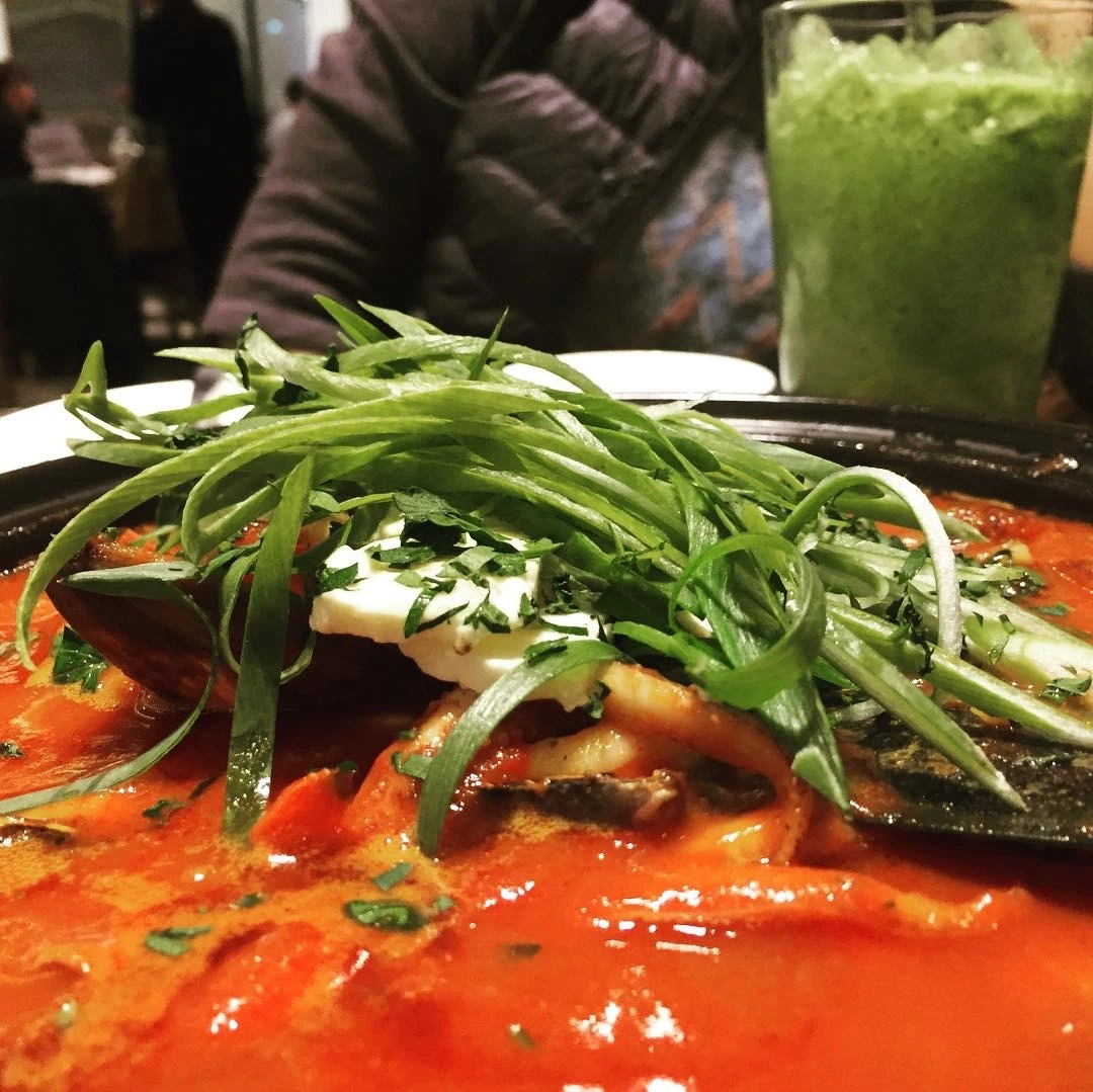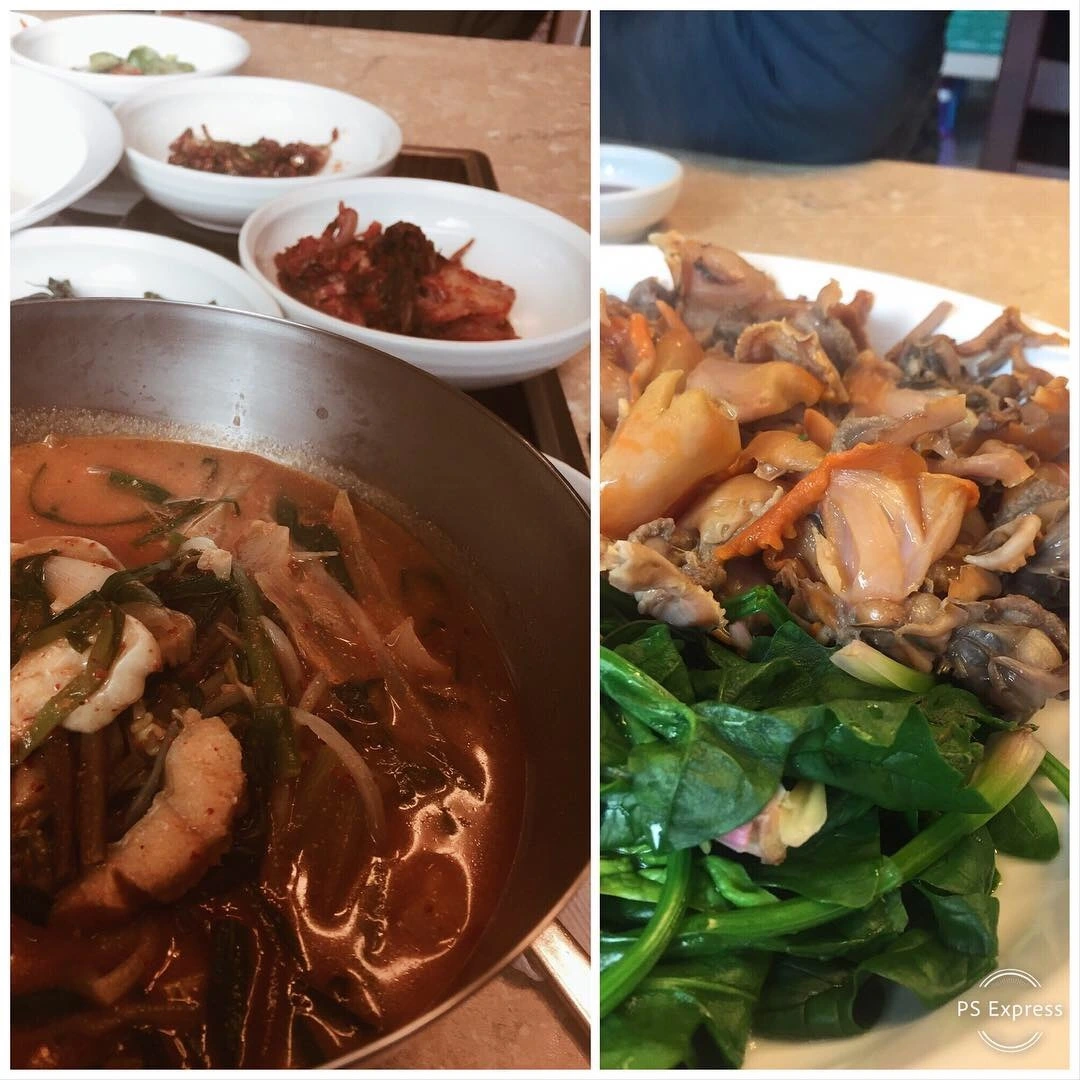 50. 피조개에 시금치를 곁들어 내주는건 훌륭. 장어탕까지 따뜻하고 친밀한 송년오찬. 아직 쓸쓸한 표정의 C님. #여수한두레
