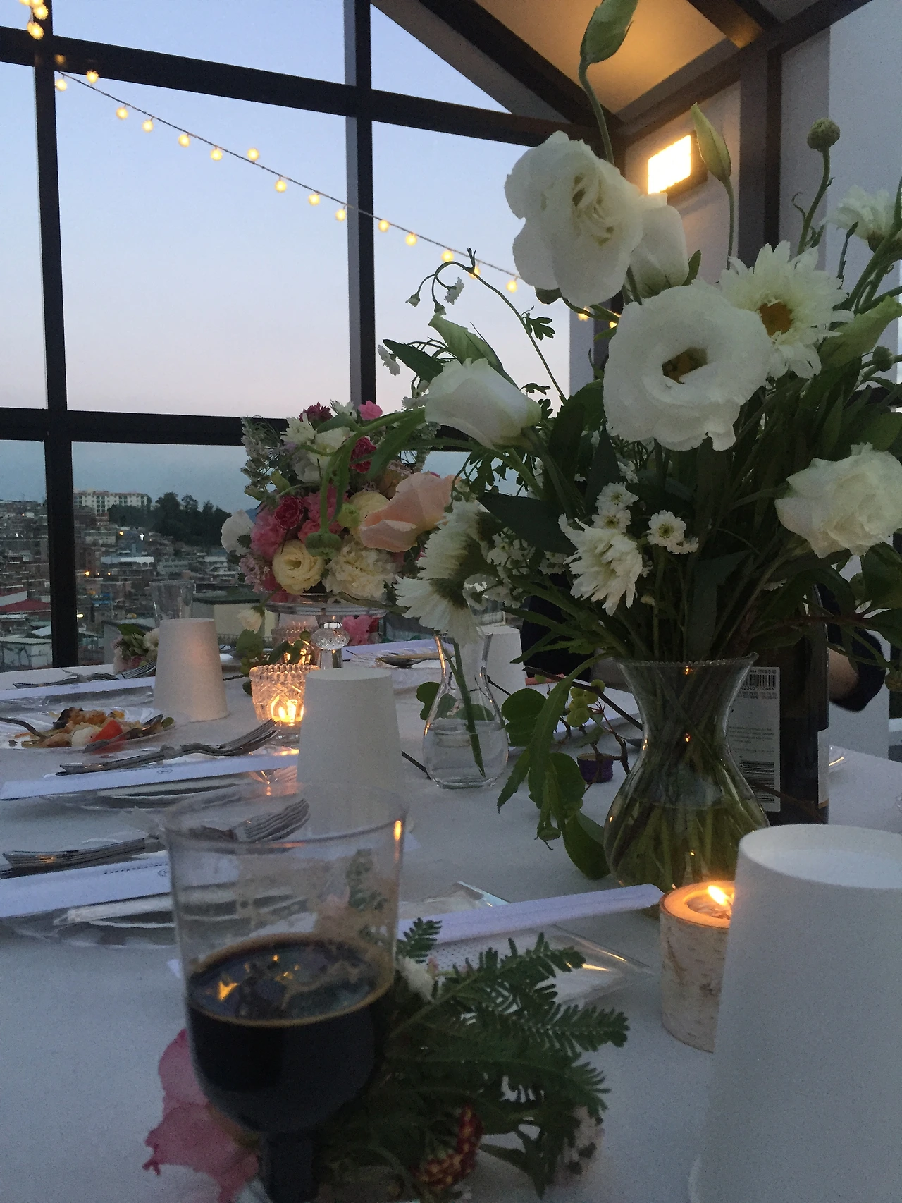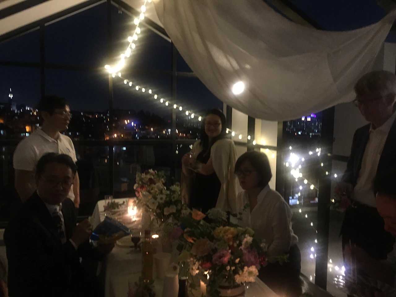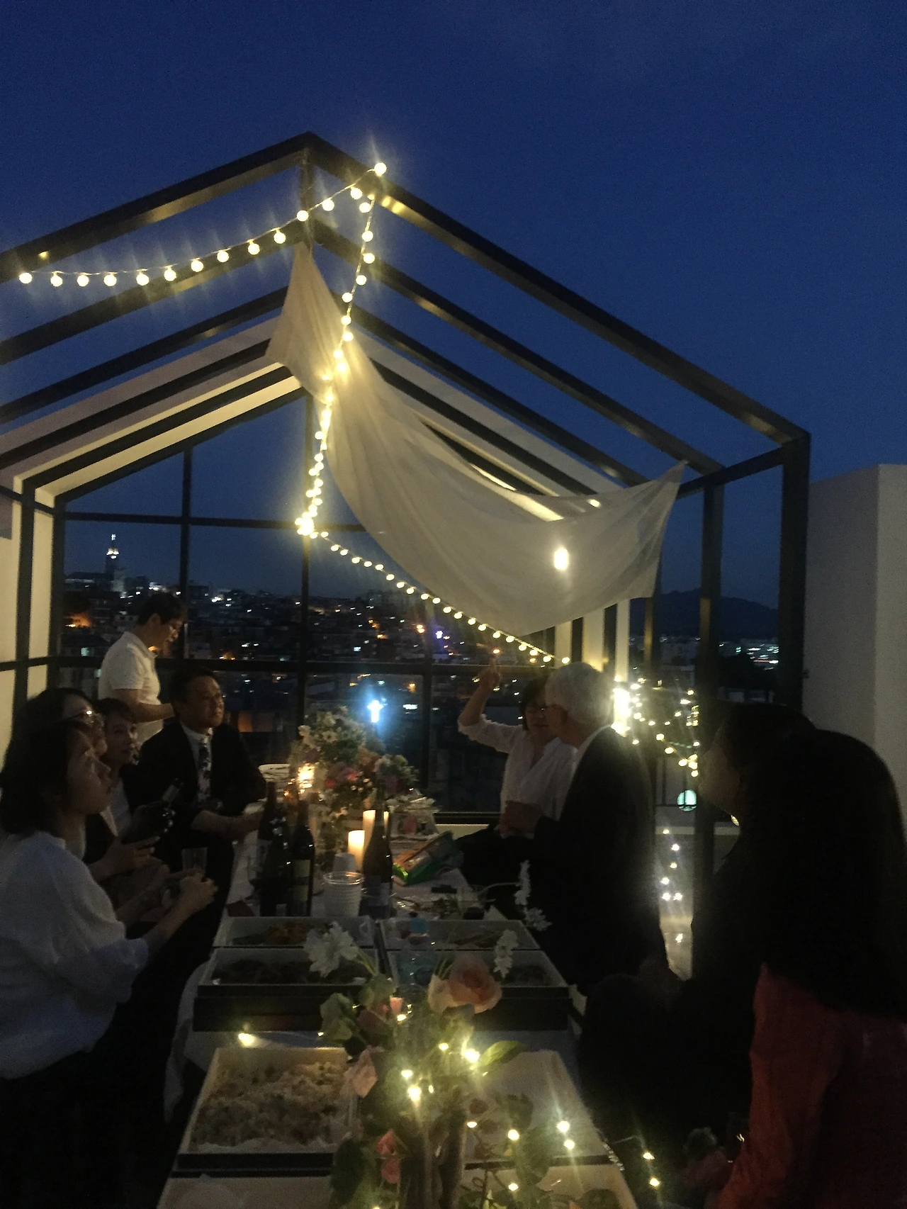 31. 모두 K님 생파추진위원장 O님의 공입니다. 꽃값만 받았다는 꽃 장식. 합리적 케이터링에, 이런 옥상을 가진 후배를 두고 있다니ㅎㅎ 소박하게 모일 뻔 했으나 O님 기획 덕분에 평소 우리답지 않은 우아한 밤이었어요. K님은 이런저런 지인에게 날짜만 통보했다는데 반가운 분들과 상냥한 새 얼굴들. 인생 잘 살았으니 이런 밤도 보내는거죠. 엔빵 고지서가 아직 도착하지 않았지만ㅎ 아름다운 시간을 보냈음 됐죠. 기록 남겨놓지 않으면 아까울 것 같아서ㅎㅎ #이런_생파라니 #꽃을단_플라스틱_술잔 #8시에도_훤한_초여름밤 #떠들석한_온니들 #술약해진K_살살_달려요 #벌써10년지기