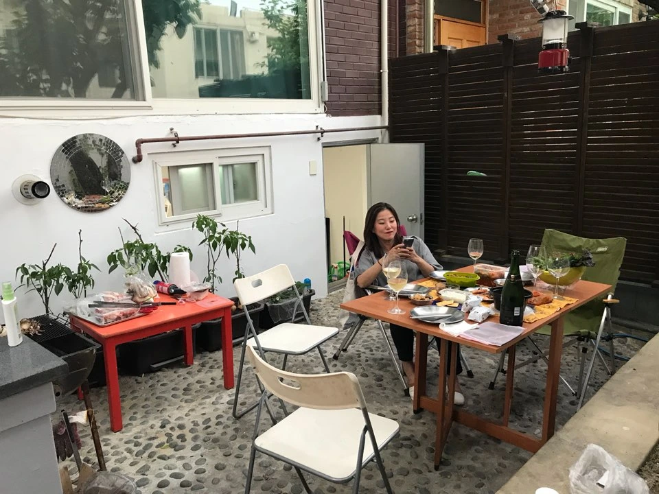 28. 내 친구 빈. 꾸준히 만나는 친구 중에 가장 긴 세월 함께 한 친구. 30년 더 지난 그 시절, 요즘 말로 걸크러쉬에 쿨한 매력 넘치는 소녀였고. 대학시절 어울려 마신 술이 얼마며. 그대가 유학 다녀오면 자주 볼 줄 알았지만 그렇게 되지는 못했는데.. 아무리 오랜만에 봐도 한결 같은 그대. 존경하고 애정하는 친구. 마당 있는 네 집이 요즘 울 사무실에서 10분 거리라니. 근데 고작 두번 째 방문이라니. 목살 삼겹살 오리고기에 버섯 새우 쭈꾸미 바비큐에 라면 고구마까지 준비했는데 냉장고 전복을 까먹었다고? 우리는 손 큰 것도 통하는군.. 기막힌 리코타 치즈를 만들어 온 J나 세련되게 과일을 준비해온 또다른 J, 야근하다 뛰어오면서도 와인을 잊지 않은 Y. 오래된 수다를 아마 앞으로도 계속 할 것 같은데.. 남는 건 사진이라는 맘으로 기록.. #친구야_고마워 #은광미*회 #Y야_연애해라_쫌 #초여름밤