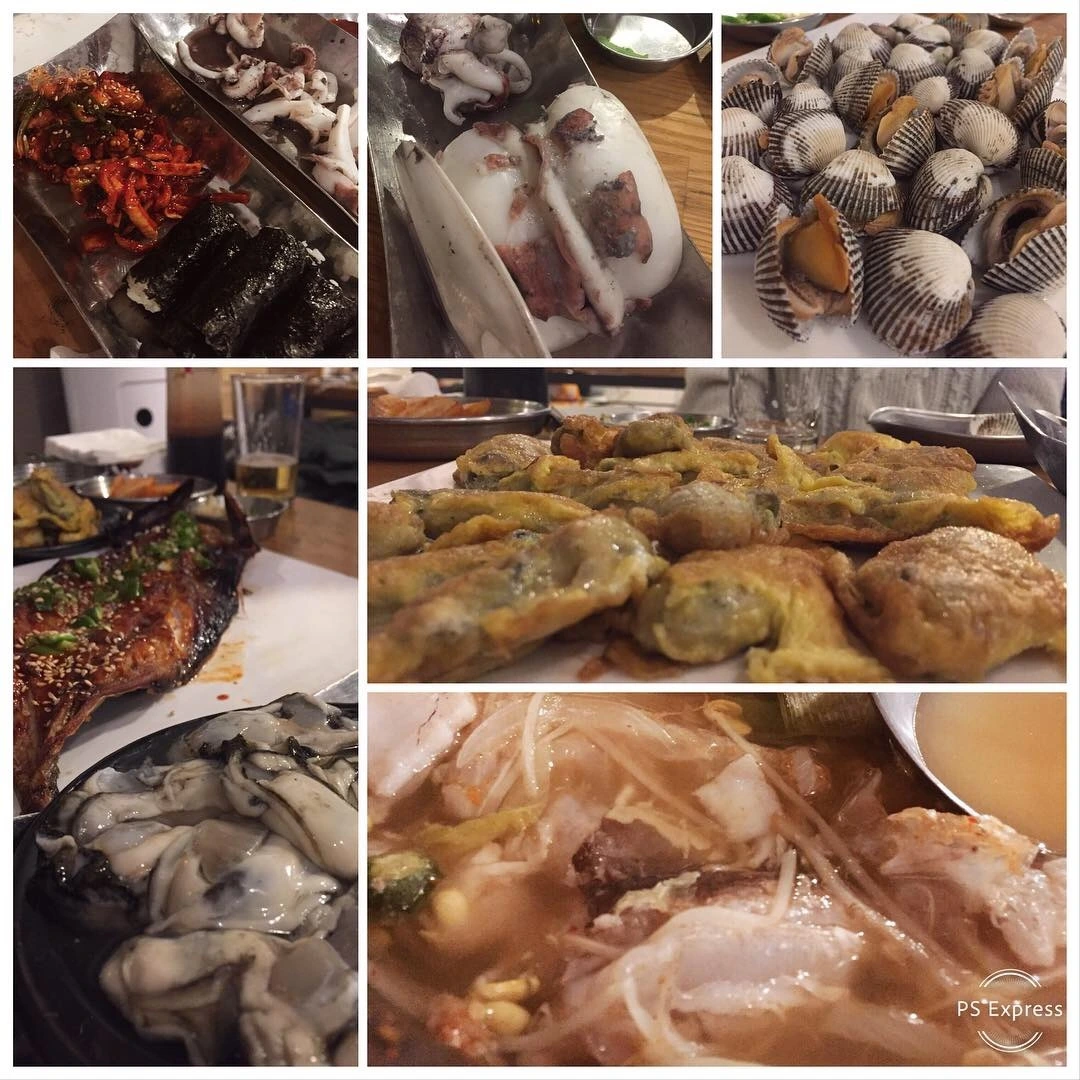 56. 한 달 전 사진을 소환. 어젯밤엔 갑오징어와 굴, 꼬막, 물메기탕만. 그분들 1차 만찬 끝나길 기다리면서 우린 각자 야근하며 오만가지 생각 #좋은보쓰 #그의고민_나의고민 #그분의_의지 #서촌통영