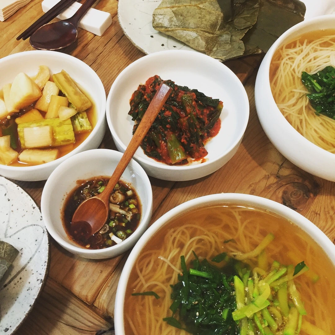 22. 작년 초여름 금비님이 알려주신 이후, 삼청동에서 가장 사랑하는 식당. 좁은 골목 따라 찾아가면 작은 문을 지나 아담한 마당이 있습니다. 식탁이 있는 큰 방이나 앉은뱅이 탁자가 서넛 있는 작은 방에서 마당을 바라보며 일단 마음이 포근해지고요. 맑고 깊은 육수에 정갈하게 담긴 국수를 한 입, 진하고 향 좋은 갓김치에 먹으면 행복해져요. 양념장에 연잎밥을 탐하고. 표고버섯 풍미 좋은 만두까지 곁들이면 진수성찬. 안쪽 방에는 솜씨 좋은 장인의 작품들이 있습니다. 원래 규방이 본업. 국수는 선한 후의가 아닐까 생각해요. 밥 한 끼에 마음의 포만감까지 얻는 여유로운 쉼터. #삼청동보물1호 #소문내기싫었는데 #규방도감