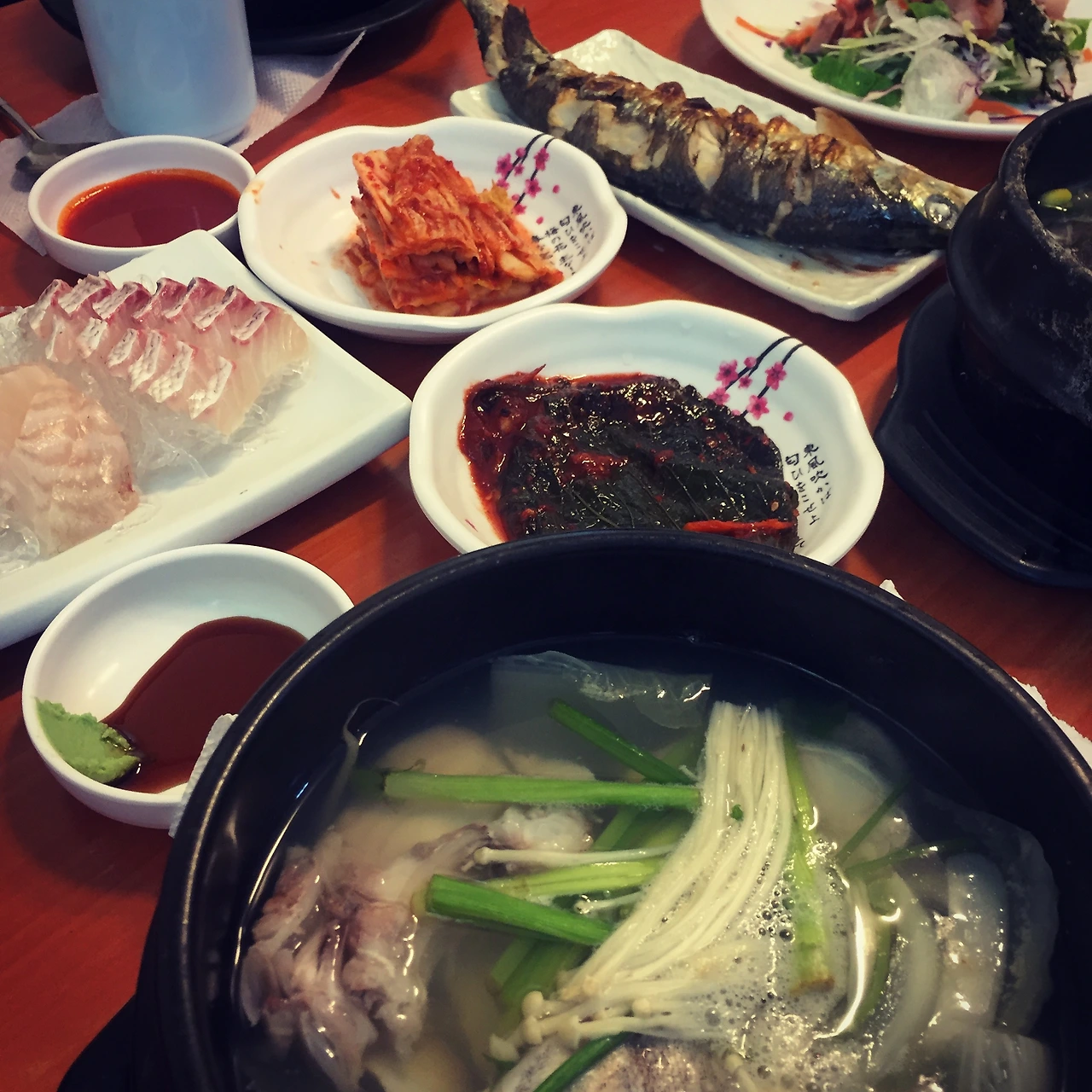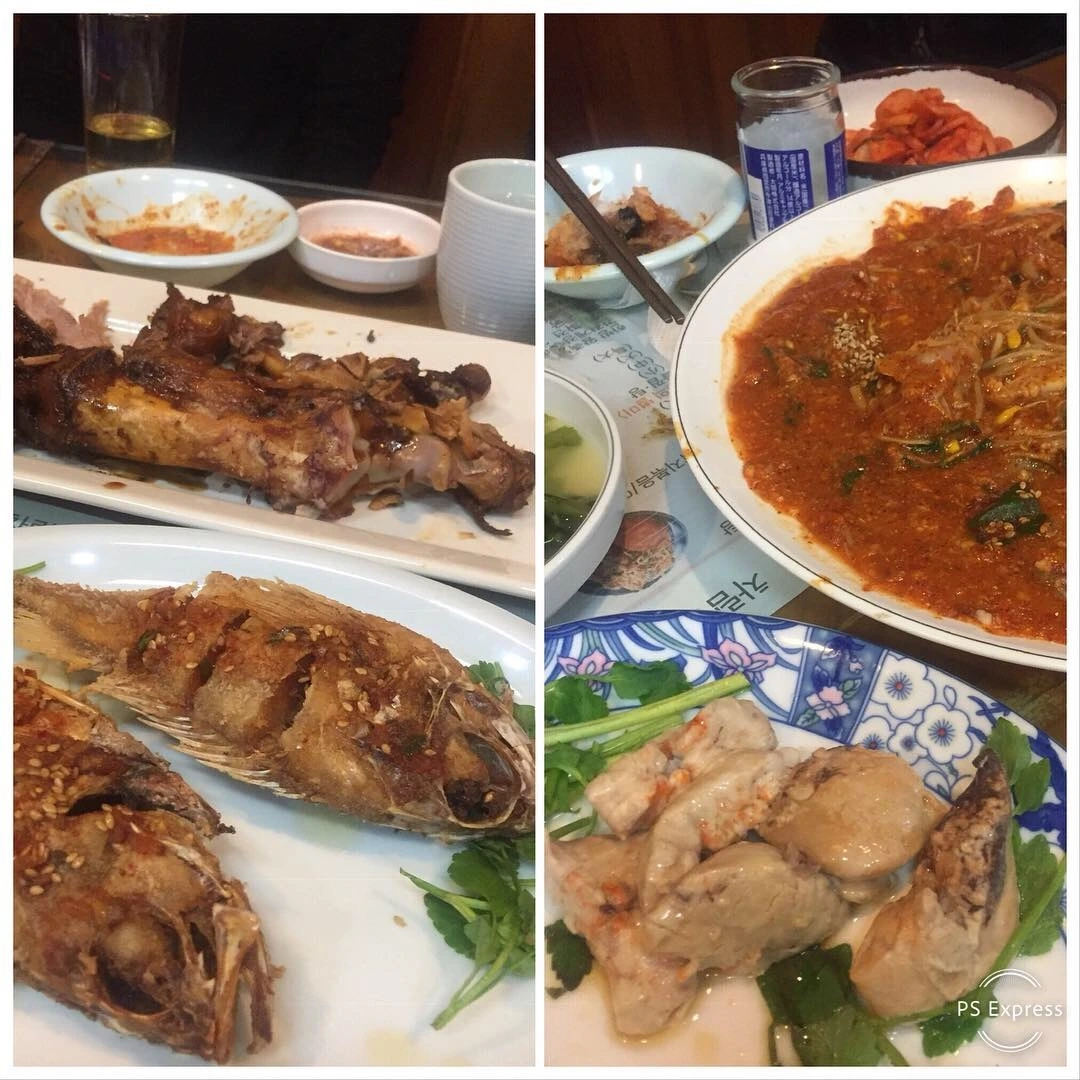 23. 우리 방 친구들 절반 가까이 술을 마시지 않다보니 저녁 회식은 잘 안해요. 와중에 드물게 다함께 해장이 필요한 날. 해장 메뉴 마뜩찮은 동네에서 1년 만에 발견하다니. 1.5만원 대구지리도 괜찮지만 회와 생선구이, 회무침까지 그냥 깔아주시는군요. 실한 청어구이가 맘에 들었어요. 밥은 안 내켰는데 깻잎절임과 야금야금 망. 2층 계단이 좁고 가팔라 꽐라 되기에는 위험한 집 #필운동이라니 #백령도횟집 #직장인점심