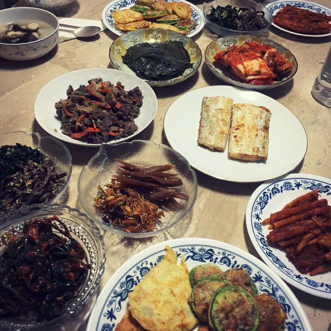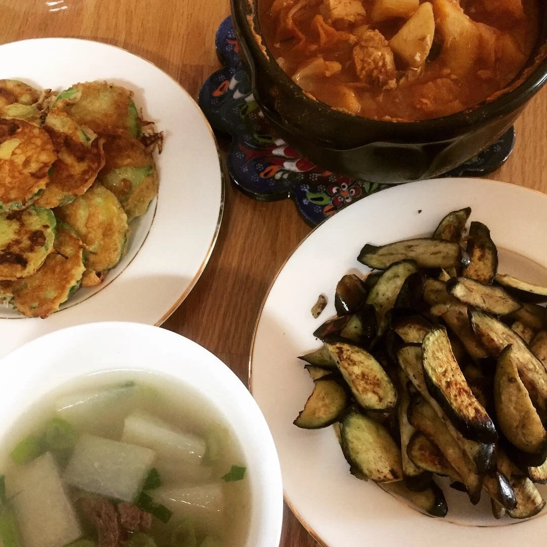 본격 집밥 기분 낼 때는 야채를 볶거나 굽고 쇠고기무국 정도는 끓여야. 언제적 밥상인지 기억도 안나네요. #평범_집밥스타그램 #엄마놀이 #자화자찬