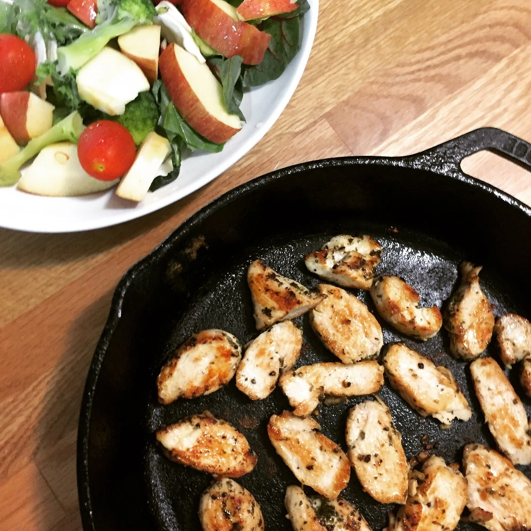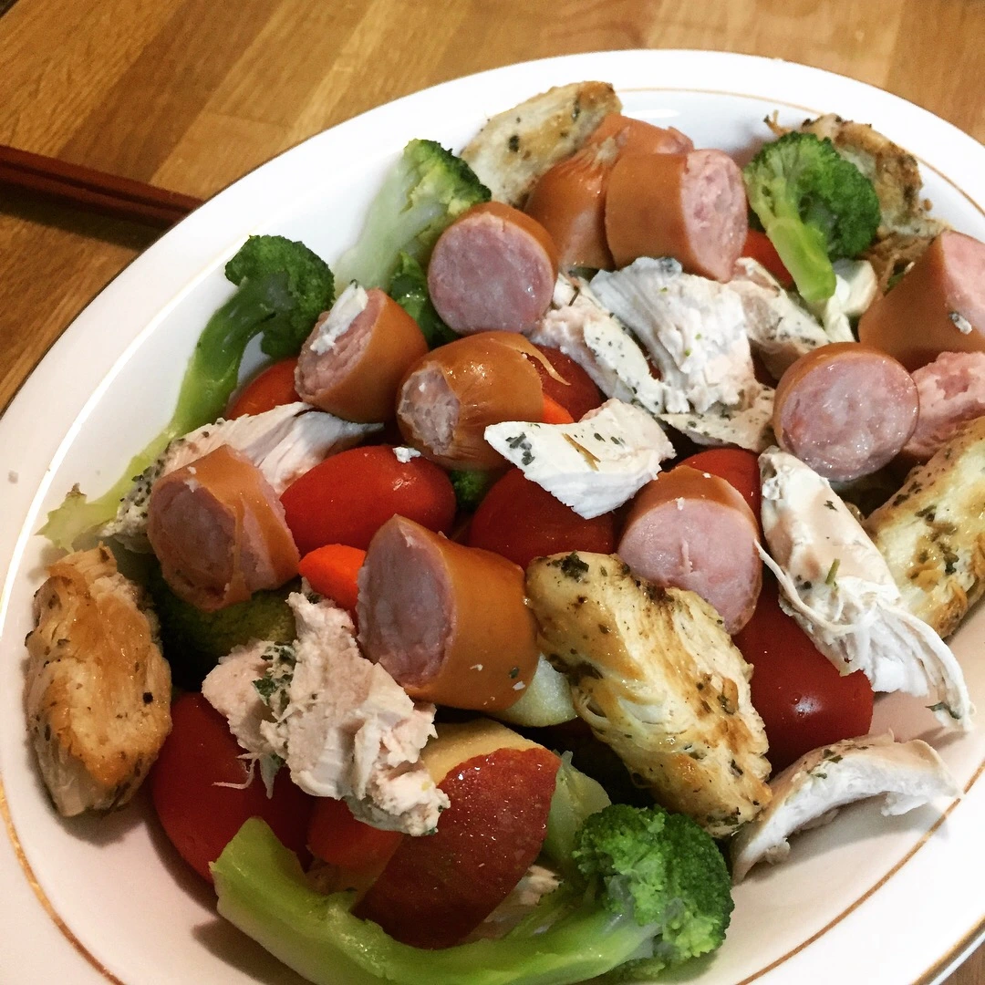33. 엄마아빠 닮을까봐 걱정이 된 아들이 뱃살과의 전쟁 선포. 수험생으로서 독서실에서 공부만 하는 줄 알았더니 밤마다 라면김밥 야식을 해왔다고 자백. 스무살 이전의 엄마 닮아 먹어도 안 찌는 체질인 줄 알았더니, 아닐 수 있다는 자각에 탄수화물을 거부했습니다. 토요일 저녁은 허브에 마리네이드한 닭가슴살을 구워 샐러드. 일요일 저녁은 먹다남은 닭가슴살에 새로 데친 닭가슴살, 소시지까지 얹어 사과 토마토 브로콜리와 야채. 이거 다욧 맞냐고, 양이 많다고 툴툴 거렸지만 둘이서 다 먹고. 뒤늦게 알바 마치고 귀가한 딸에겐 특제 인스턴트 막국수.. #주말밥상 #샐러드로_과식 #아들아_아직_날씬해 #뱃살도_유전일까 #아직은_귀여운배 #엄마아빠가_문제지