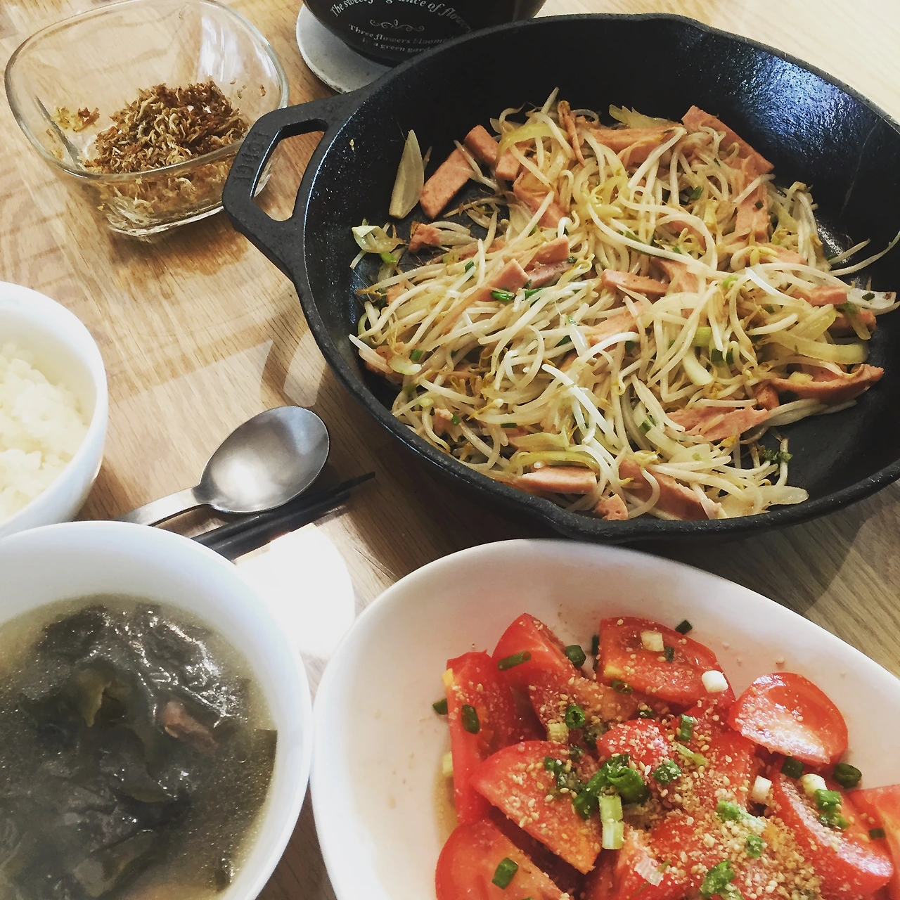 26. 일주일만에 제대로 냉장고를 뒤져보니, 곰팡이가 시작되려는 토마토와 시들시들 숙주, 먹다남은 스팸 약간. 냉동고에 오래된 국거리 쇠고기도 걸리고요. 무쇠팬 달군뒤 양파와 숙주에 소금 간 약간해 먼저 볶고 얇게 썬 스팸 투척. 토마토에는 매실청 참기름 쪽파 깨소금. 냉장고 파먹기. 토요일 아침입니다. #토요일에도_일찍_눈떠지고_나이탓인가 #엄마아빠_해장니즈 #새벽부터_세탁기도_돌리고 #바쁜토요일