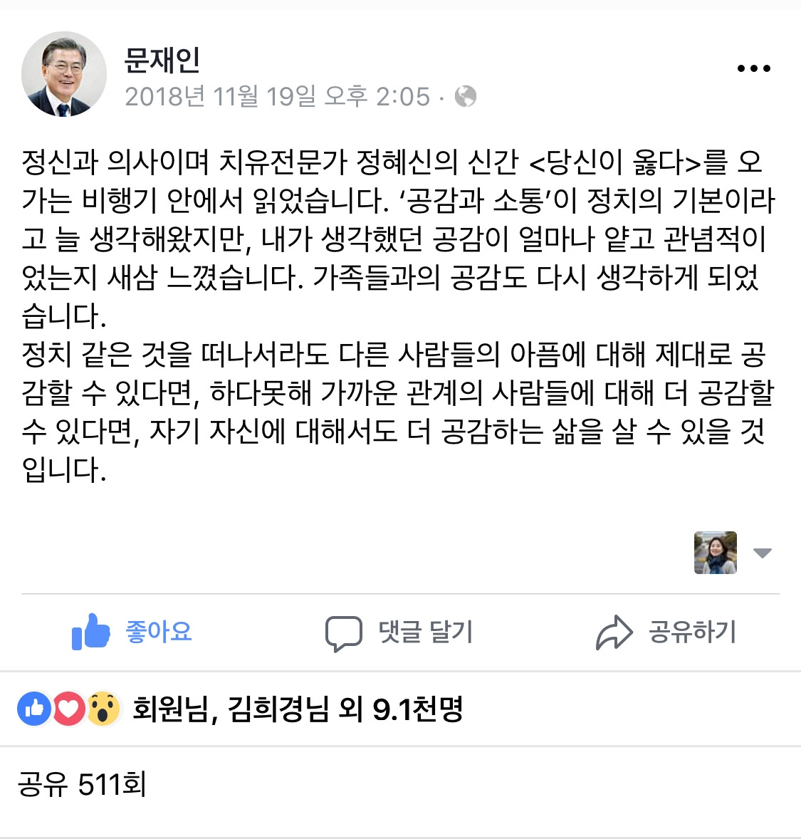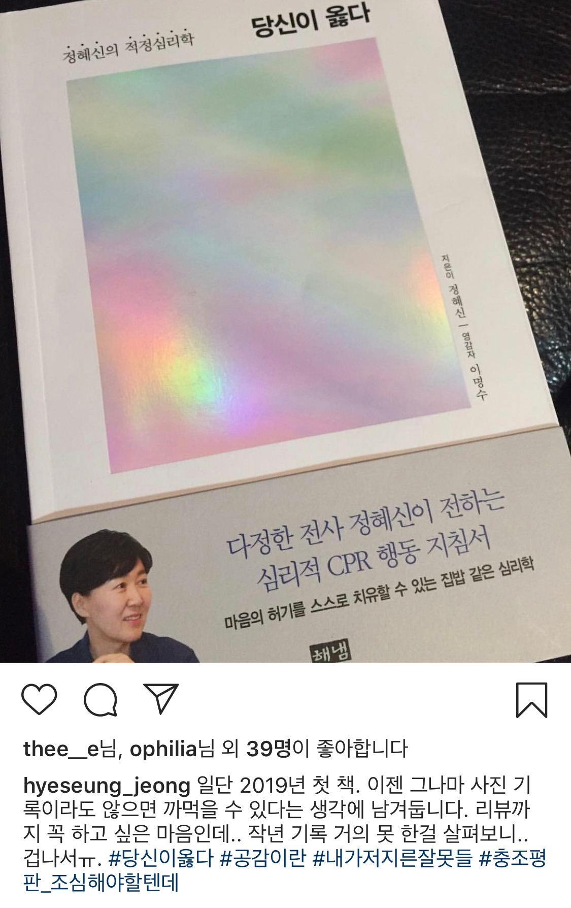 사실 작년에 정혜신님 짝궁 이명수님 페이스북 글을 통해서, 제가 치유받았습니다. 이명수님이 아프셨던 고백, 정혜신님이 어떻게 그를 지켜주셨는지 정확한 묘사 속에서 서로에게 구원이 되는 관계를 봤습니다. 사람이 사람에게 온전히 다 던지는게 어떤건지 엿봤습니다. 그것뿐인지, 대체 왜 그런지 모르겠지만, 저는 여전히 이명수님 페북을 보면서 마음을 달래곤 합니다. 이 힐링의 정체를 잘 모르면서요. 와중에 진정 공감자라고 생각하는 대통령께서, 당신의 공감이 얕고 관념적이었다고 고백하시는 바람에, 이 책을 읽지 않을 수가 없었어요.