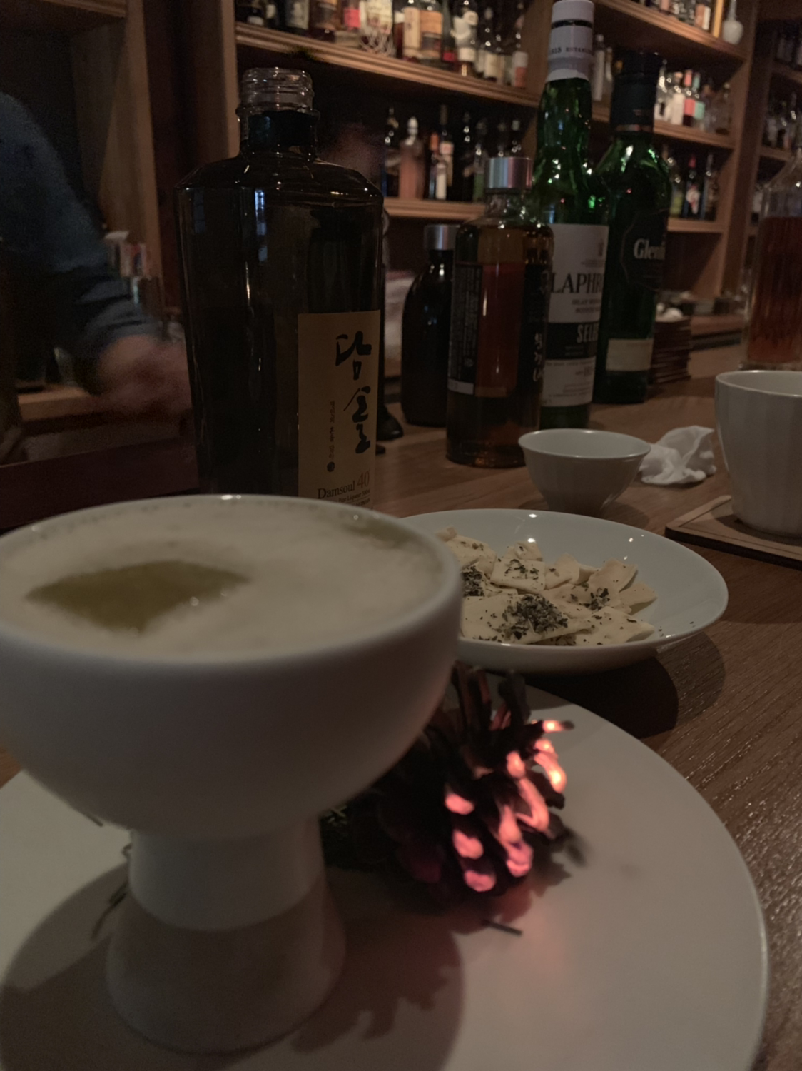 28. 2차는 그 님이 쏘는 위스키. 전 아벨라워. C가 주문한 함양주는 솔송주 베이스에 솔방울 태워 훈연 느낌 내는 칵테일. 그 님은 글렌피딕. 1차에 합류한 그 님에 대한 성토와 원망을 계속 놀리는 농담에 섞어 쏟아내고. 이러저러 구박했지만... #참 #통인동