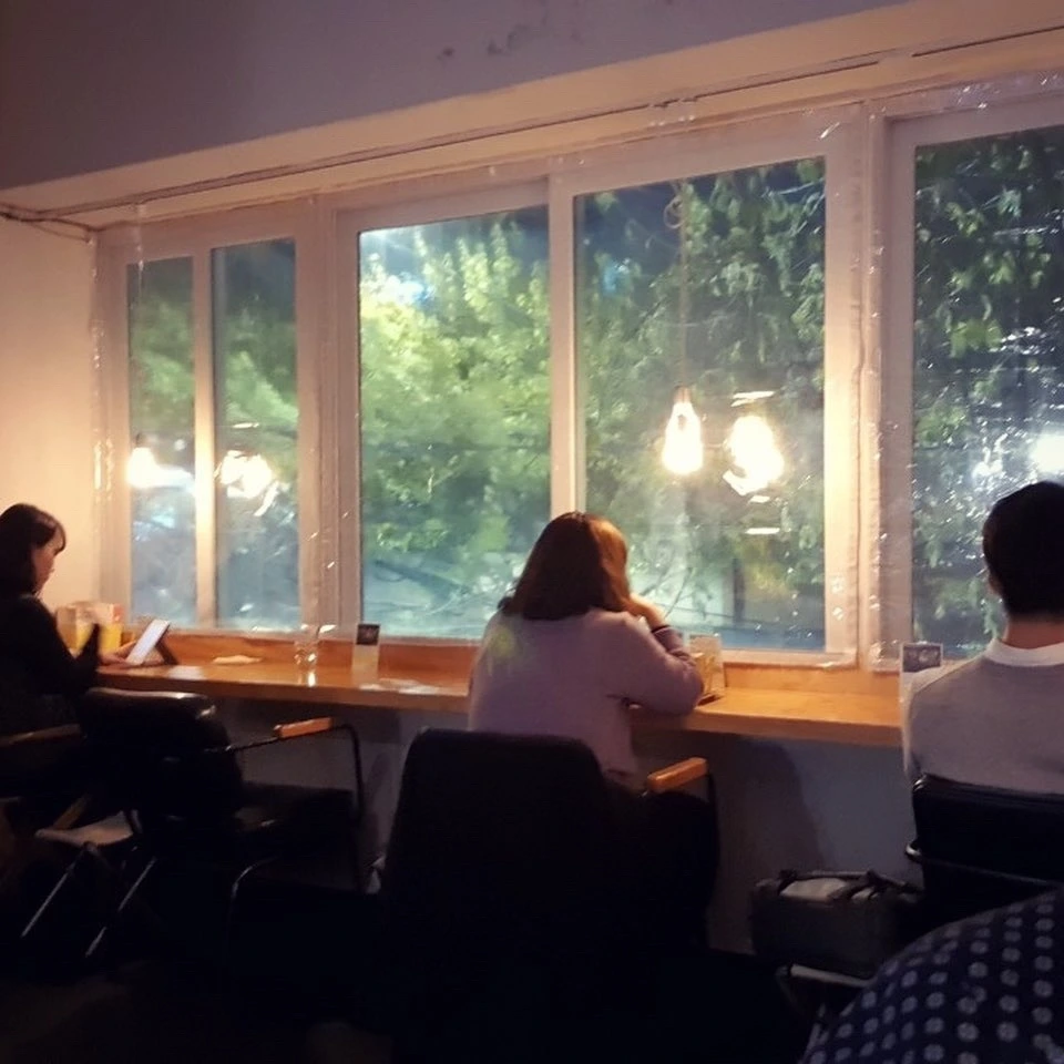 125. 힙한 을지로, #힙지로 불금 구경.. 1차는 #밥먹는술집_광장. 야박하지 않게 넉넉히 공간을 쓴 덕분에 4인 테이블 하나. 둘이 나란히 앉는 2인석 등을 제외하면 대체로 혼밥혼술 전용 창가테이블. 불금 혼술이 평온한 곳. 더구나 #반말페이제. 반말로 주문하면 두 배 받겠다는 점잖은 패기. 한 알에 2100원 굴 튀김을 한 접시씩 먹고.. 6900원 양배추 스테이크. 양배추를 통으로 구워낸게 이렇게 맛있다니 놀라운 메뉴입니다. 대체로 1만원 안팎의 메뉴들은 착하고 훌륭. 와인값도 착해 2병.