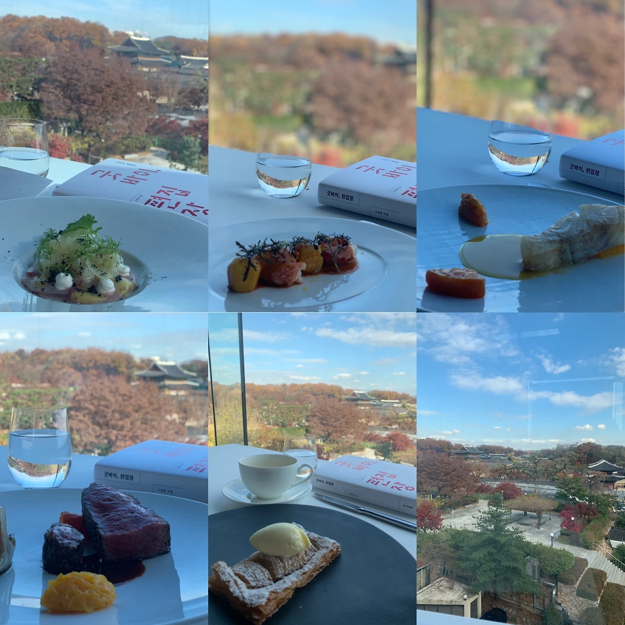 124. 꾸역꾸역 잘먹고산다는게 마음 불편하거나 미안하지 않는 세상이 좋은 세상일텐데. 호사로운 날이었어요. 근처 근무할 때에도 비싸서 얻어먹기도 사주기도 힘든 식당 #다이닝인스페이스 점심. 아직 가을물이 남은 창덕궁을 바라보는 뷰가 예상대로 끝내줍니다. 음식도 훌륭해 뭐하나 남길 수가 없더라고요.. 게다가 두 K님과 대화라니. 제가 참 복많은 인간.. 만점 점심에 이어.. 저녁은 한남동 #에피세리꼴라쥬. 와인값만으로도 후덜덜 했는데, 가볍게 쏴주시는 능력자 S 덕분에 호사. 그 능력자가 요즘 #플랜트패러독스 에 빠져서 가리는 음식이 엄청 늘었는데, 제게도 식단 짜줄테니 그대로 먹어보라고요. 탄수화물은 물론 붉은 고기도, 토마토도, 가지도 피하는 삶을 저는 살 수 없는데... 걍 와인만 퍼마시며 살아야 하는 걸까요. 무튼 회사가 쑥쑥 성장하고, 실질적 수익을 내고, 더 큰 꿈을 그리는 건.. 정말 잘 안먹어도 배부른 비결일듯요.