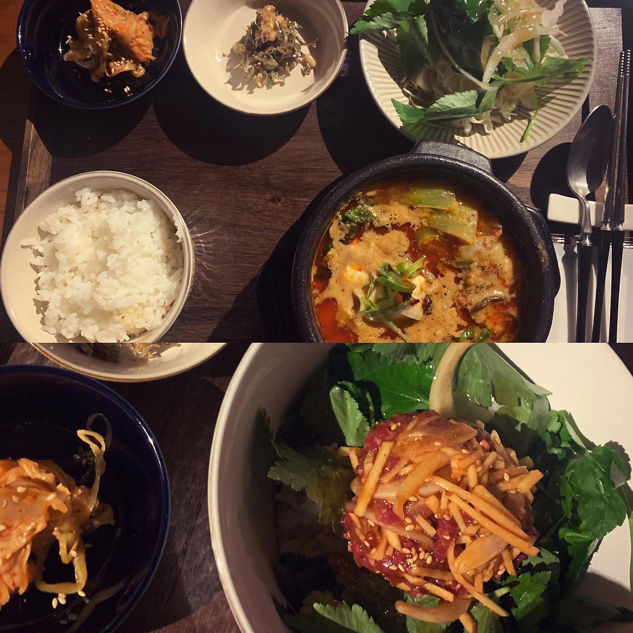 32. 해장이 필요한 그녀는 마라순두부를 택했고. 참나물을 곁들인 육회비빔밥은 무척 고소했어요. #서촌_도취 #그녀와_데이트 #오래가요_우리