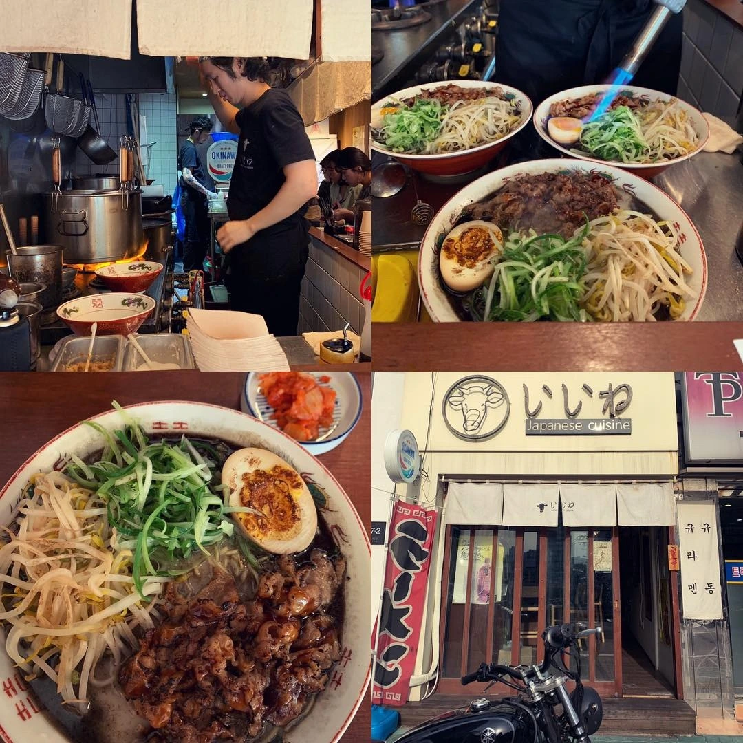 25. 역대급 규라멘. 지난 토요일엔 오후5시 문닫는다는 사실에 좌절했다가 오늘 드디어. 지나가다 간판만 보고 혹한건, 규라멘 규동 내세운 넘나 작은 가게라는 점. 테이블 없이 다이에 둘러앉는 자리가 전부인데 토요일 오후 4시50분 거의 만석. 저를 비롯해 절반 이상 혼밥러. 그릇에 마늘과 설탕? 소스, 사골국물을 저울로 계량하며 넣고 라멘 위에 숙주 고기 파, 반숙계란을 듬뿍 올린뒤 토치로 불맛 내줍니다. 청년의 손놀림이 어찌나 체계적인지 넋놓고 감상. 맛있어요ㅠㅠ #이이네 #후암동맛집