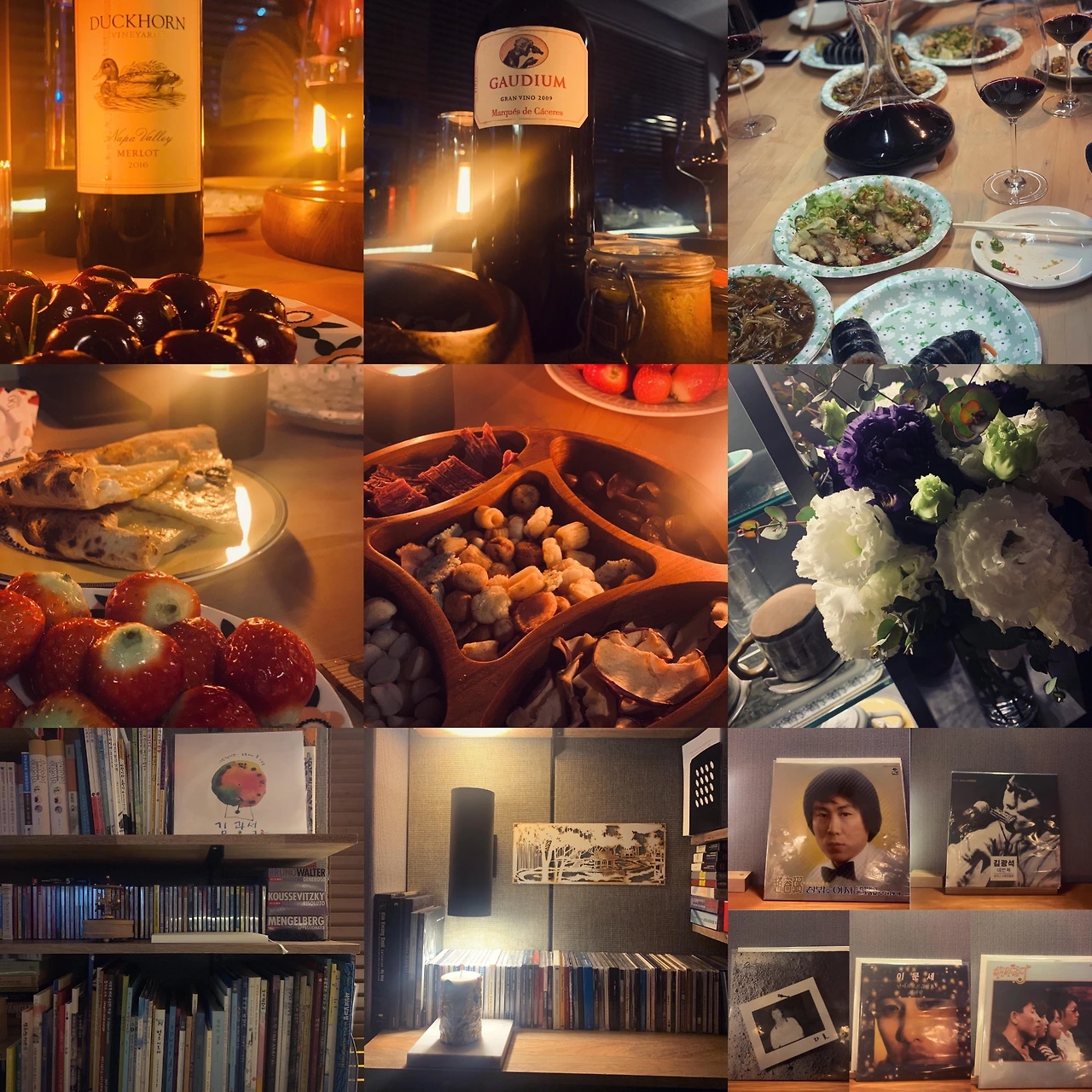 99. 생일파티 초대를 받았어요. #비덕밥상 #시와콘서트 #지현디제잉 까지 구성이 있는 생파. 김탁환님 #덕후의식탁 행사에서 처음 뵙고 #치유패거리 만남에서 인사드렸던 비빌언덕, 비덕님 생파. 요즘 도통 얼굴보기 힘든 K선배를 만날 기회이기도 해서 욕심냈어요. 부엌 어시스트로 돕겠다고 일찌감치 큰소리쳤던 터. 소셜다이닝, 케이터링까지 거침없는 비덕님 솜씨를 곁눈질하면서 앞치마 두르고 저 음식들 아주 쪼금 거들었어요. 이날 유일한 문제는 하필 그 토요일. 마음은 서초동을 가야하는데 어쩔 수 없었어요. 미리 어시 손을 들지 않았다면 모를까ㅎㅎ 덕분에 한 사람의 삶이 주변을 어떻게 풍요롭고 즐겁게 만드는지, 한 사람의 온기가 각기 다른 사람들을 어찌 이어주는지, 즐겁게 목격한 시간이었죠. 누구나 사랑받기 위해 태어났다지만, 사랑을 널리 나누는 사람, 마음을 다하는 사람에게 주어지는 특별한 순간이랄까. 보면서 참 좋았습니다. 비덕님 한 사람을 위한 노래가 아니라, 모두에게 전해지는 시와님의 노래도 훈훈했죠. 지현님의 디제잉을 못보고 나온게 아쉽. 저 배웅까지 나오셔서 속깊은 얘기를 짧고 굵게 나눈 K선배. 선배를 어찌 응원해드릴지 생각이 길어지고요.