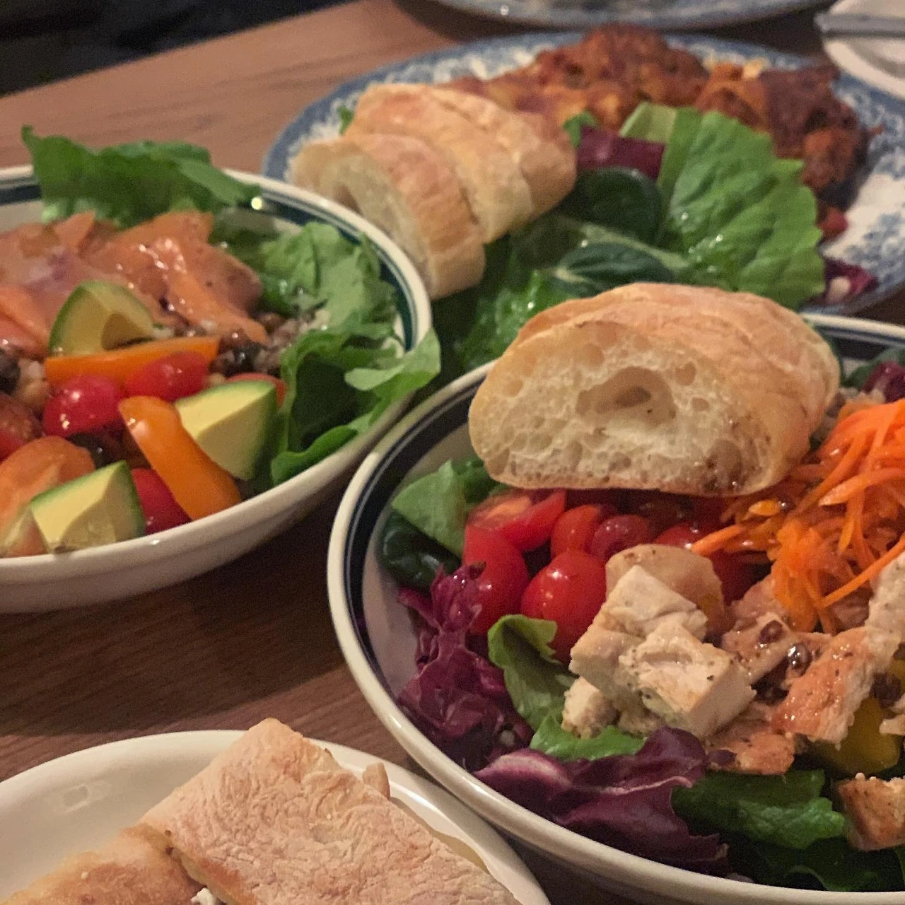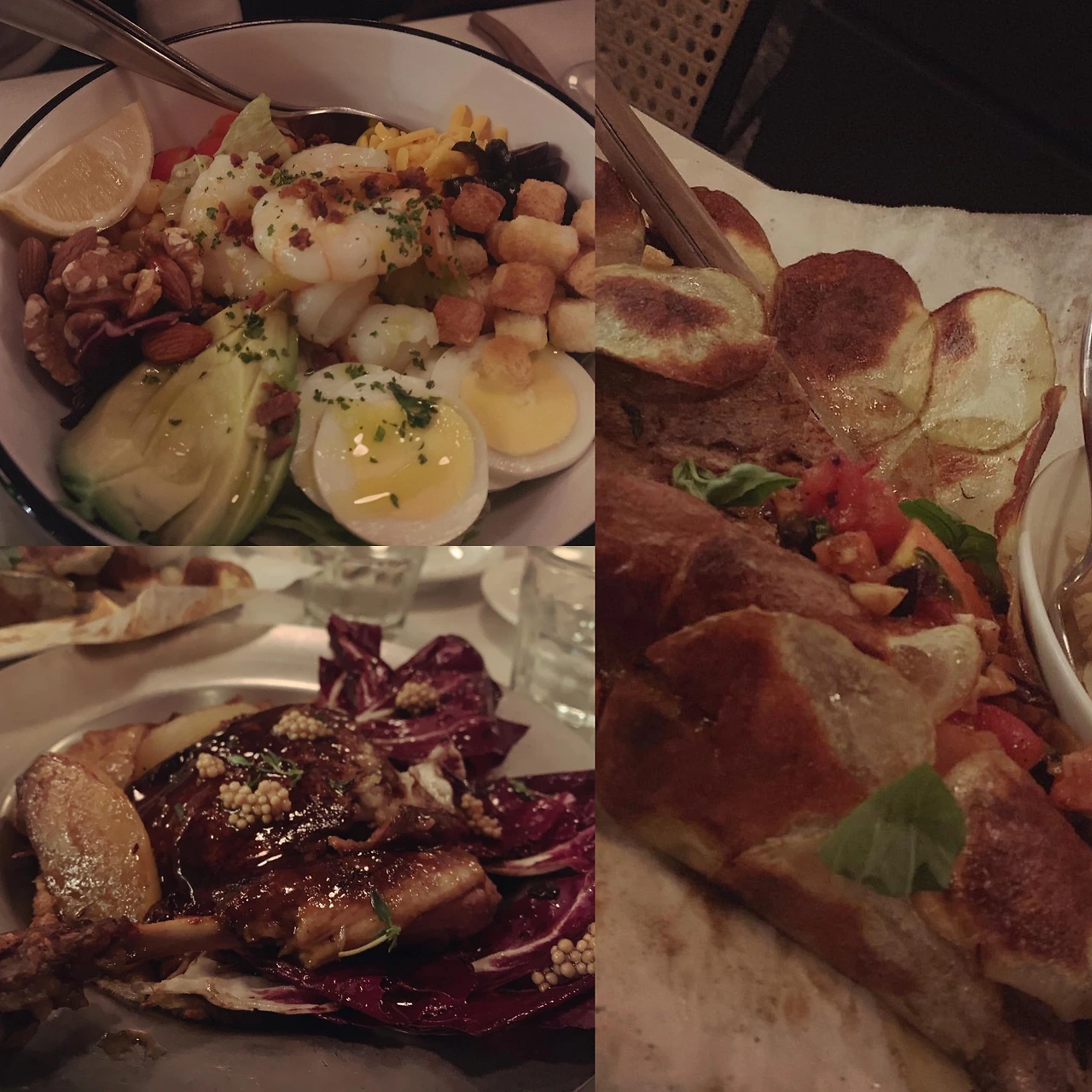48. 요즘 인스타에서 찜했던 식당 #비스트로노미로랑생 샐러드는 푸짐했고 대구살 브랑다드(?) 얹은 바겟도 신기. 스테이크도 훌륭합니다. 셋이서 와인 두 병 하고 10시 마감에 나왔는데 다시 인근 곰탕집에서 소주 4병... 이OO 사연들..두 분 걱정 뭔지 공감.. 끝내 괜찮을거라 믿어요.