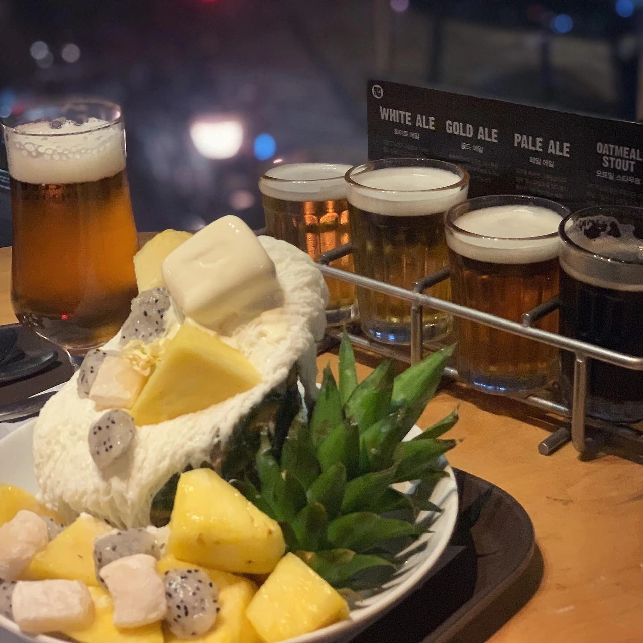 72. 건대 명소 #라파밀리아 초대해주신 황쌤 고마워요. 도시의 뷰네요. 결국 저녁 쏘신 ㅅㅅ님, 슬픔을 슬픔으로 덮고 웃어주셨네요. 계속 그렇게 버텨주세요. 두 분과 함께 2차는 건대 #BRCD 파인애플 통으로 넣은 파인빙수 굿.