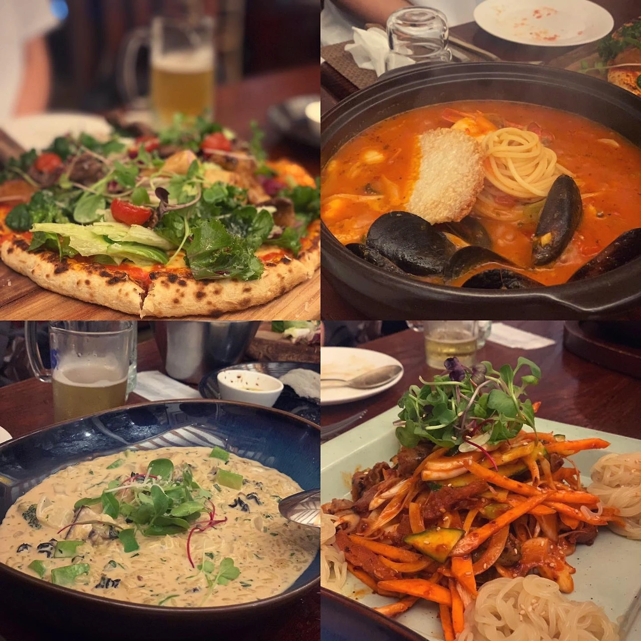 63. 서촌에 이런 집을 몰랐다니 #퀸즈테라스한옥달 고추장파스타, 된장크림리조또에 이어.. 골뱅이와쫄면. 퓨전이란 말로 부족. 피자 파스타 리조또에 소맥은 저조차 난생처음. S님 2차까지 감사. 오랜만에 뵌 H님, 체하지만 않으셨어도.