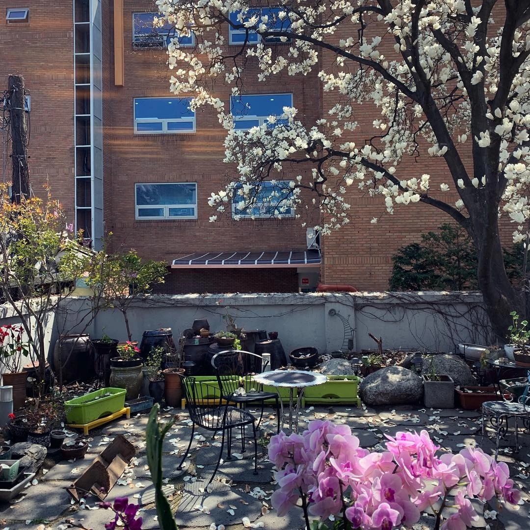 22. 계절도 생각 못하고, 봄인갑다 머리로만 인지한채 4월. 눈에 들어오지 않던 꽃들이 오늘따라 눈부시더군요. 벚꽃도 찬란하지만 #목련나무집 목련은 그 생의 절정을 태우는 중. 이제는 괜히 각별한 음식 #배추적 곁들여 얌전한 나물에 비빔밥 점심 수다를 갖는데 바람이 불 때 마다 꽃비가 내리더이다. 각자 온갖 일들에 치여 간만에 모두 봄을 즐겼어요. 짐짓 가볍게 툭툭 던진 이야기의 무게는 봄으로 넘겨버립니다. #힘내요_온니들