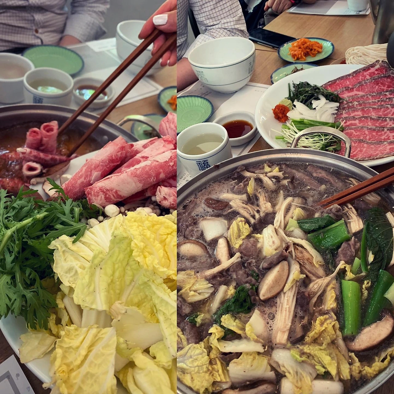 33. 리뉴얼하면서 테이블에 인덕션 숨긴 형태로 바꿔서 전골을 메인으로. 국수전골 훌륭해요. #예나지금이나_접대용 #삼청동_복정식당