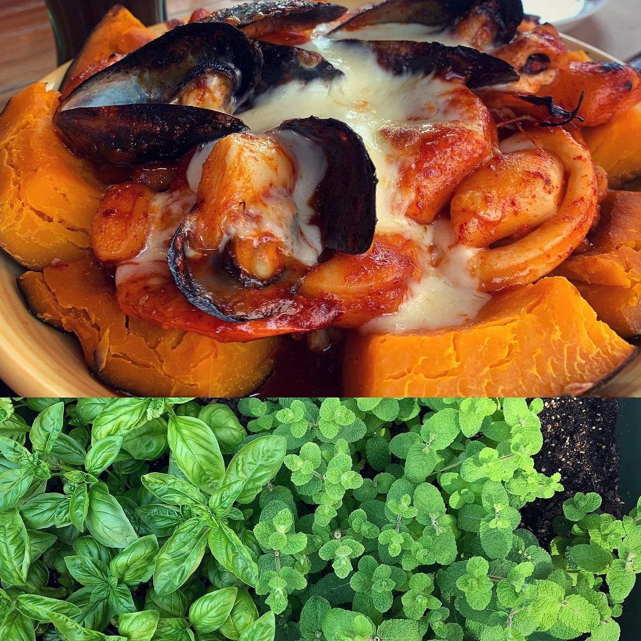 34. 일요일 늦은 오후, 셋이 작당. 해물떡볶이는 딱히 취향은 아니지만 단호박까지 푸짐. 가성비는 별로. 그러나 가게 앞 화분에 심은 바질과 민트가 넘 예뻐서 담엔 피자를 함.. #서촌_송스키친