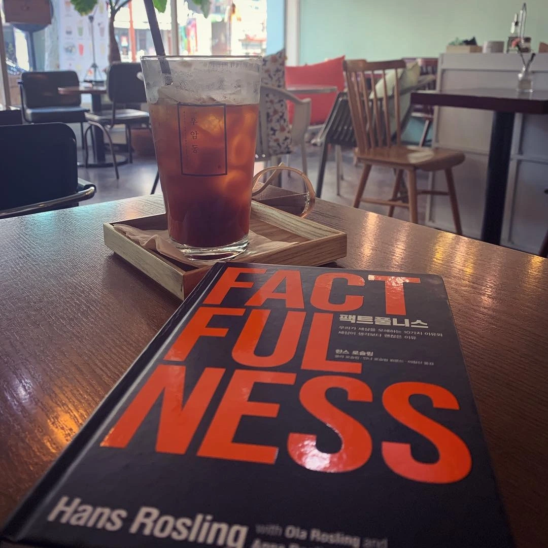 23. 오후엔 딸 아들 각자 나가고, 동네 탐험 중. 딸이 추천해준 #후암동커피 햇살 환한 작은 커피집에서 카페놀이. 오늘의 책은 몇 장 들춰보다 요즘 훅 빠진 #팩트풀니스 한쪽 극단의 빈곤국과 다른 극단의 부유한 나라, 괄호하고 예시로 (북아메리카와 유럽, 그리고 일본, 한국, 싱가포르 같은 일부 국가).. 우리나라의 위치란 이렇군요. 책 도입부에서 제 지성이 침팬지보다 못하다는 걸 확인한 후, 계속 놀라며 읽는 중입니다. #한스로슬링_존경합니다 #휴일이라고요 #여유작작 #아우터_없이_봄