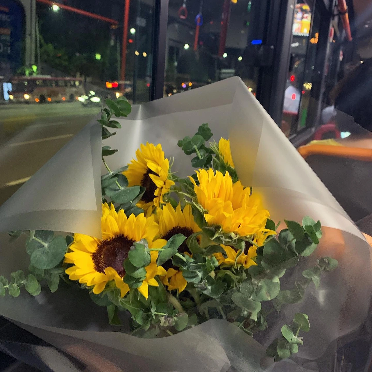 70. #벌써한달 아직도 꽃을 선물받고 있어요. 고마워요. 경온니. 집으로 가는 버스에 해바라기 향기 뿜뿜. 아직 케잌도 받고 있어요. 역시 고마워요. 영온니. #이쯔모 가지미소볶음과 계란말이, 포테토사라다는 오랜 제 최애메뉴. 정말 낄낄대고 편한 시간 함께 해준 현옵 섭옵 경도 고마워요
