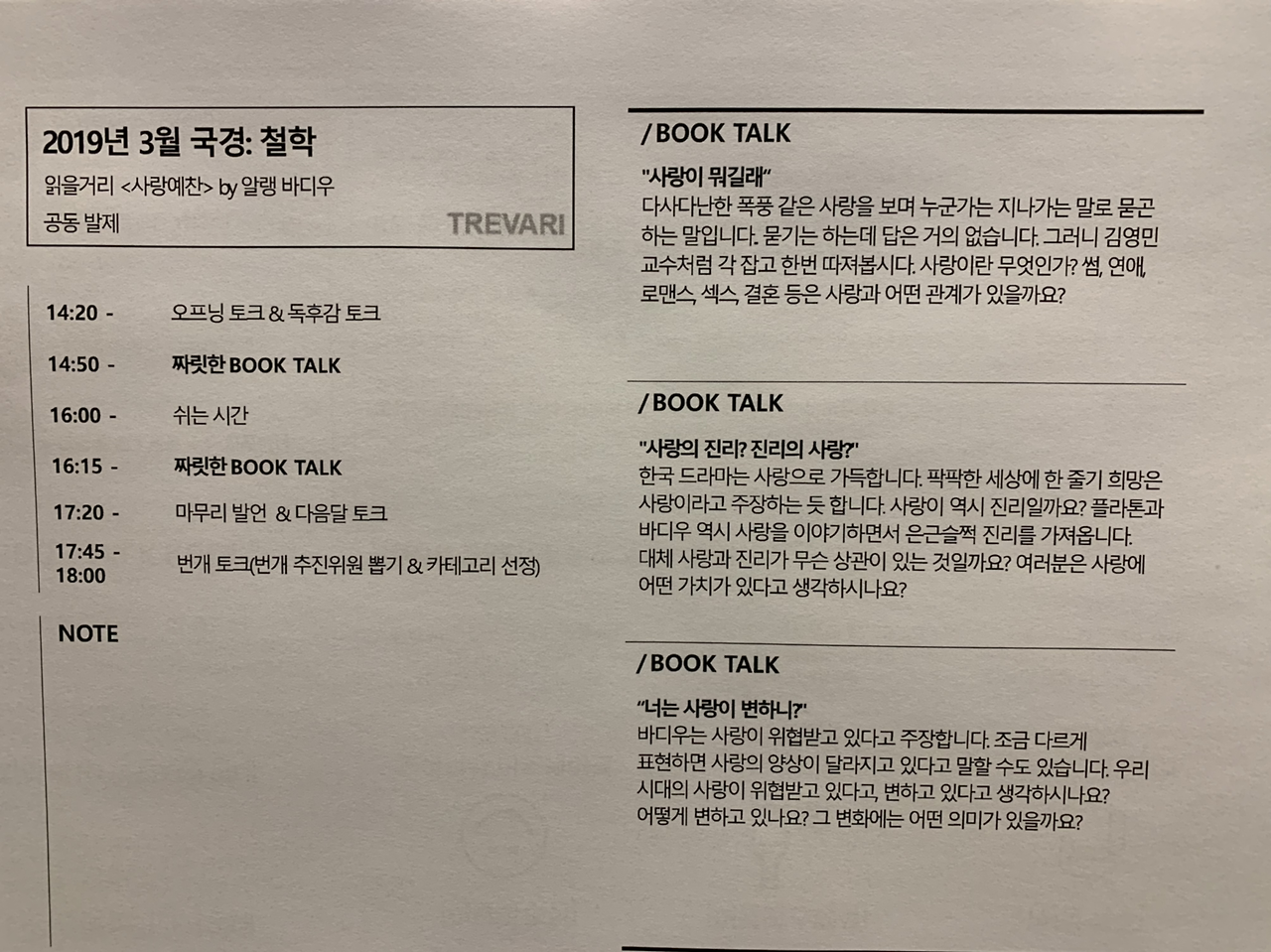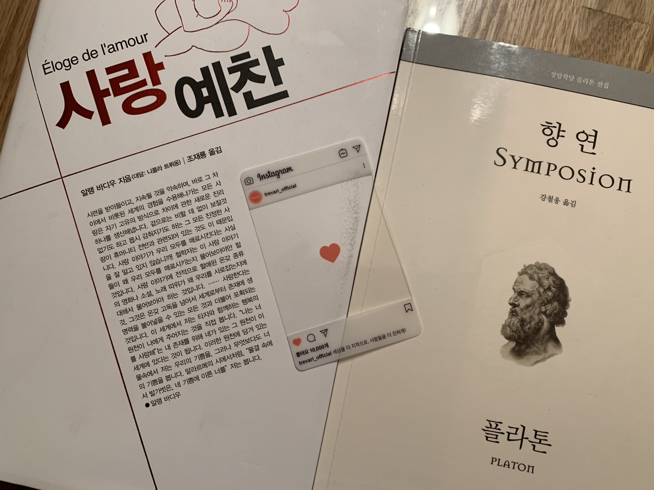 사랑을 책으로 공부하다니. 정말 이런 날이 오기는 오는군요. 프랑스 철학자 알랭 바디우의 <사랑 예찬>, 독서모임에서 읽었습니다. 무려 플라톤의 <향연>과 함께 읽었습니다.