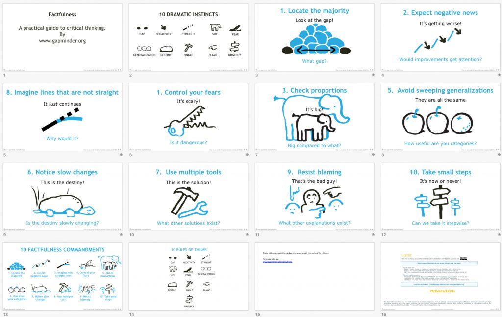 저자의 미덕은 어려운 이야기를 아주 쉽고 재미나게 풀어낸다는 건데요. 더 중요한 미덕은 ‘팩트’입니다. ‘팩트풀니스'라는 제목부터 그렇잖아요. ‘사실충실성’이란 번역이 최선인지 모르겠지만, 팩트 폭격 장난 아닙니다.