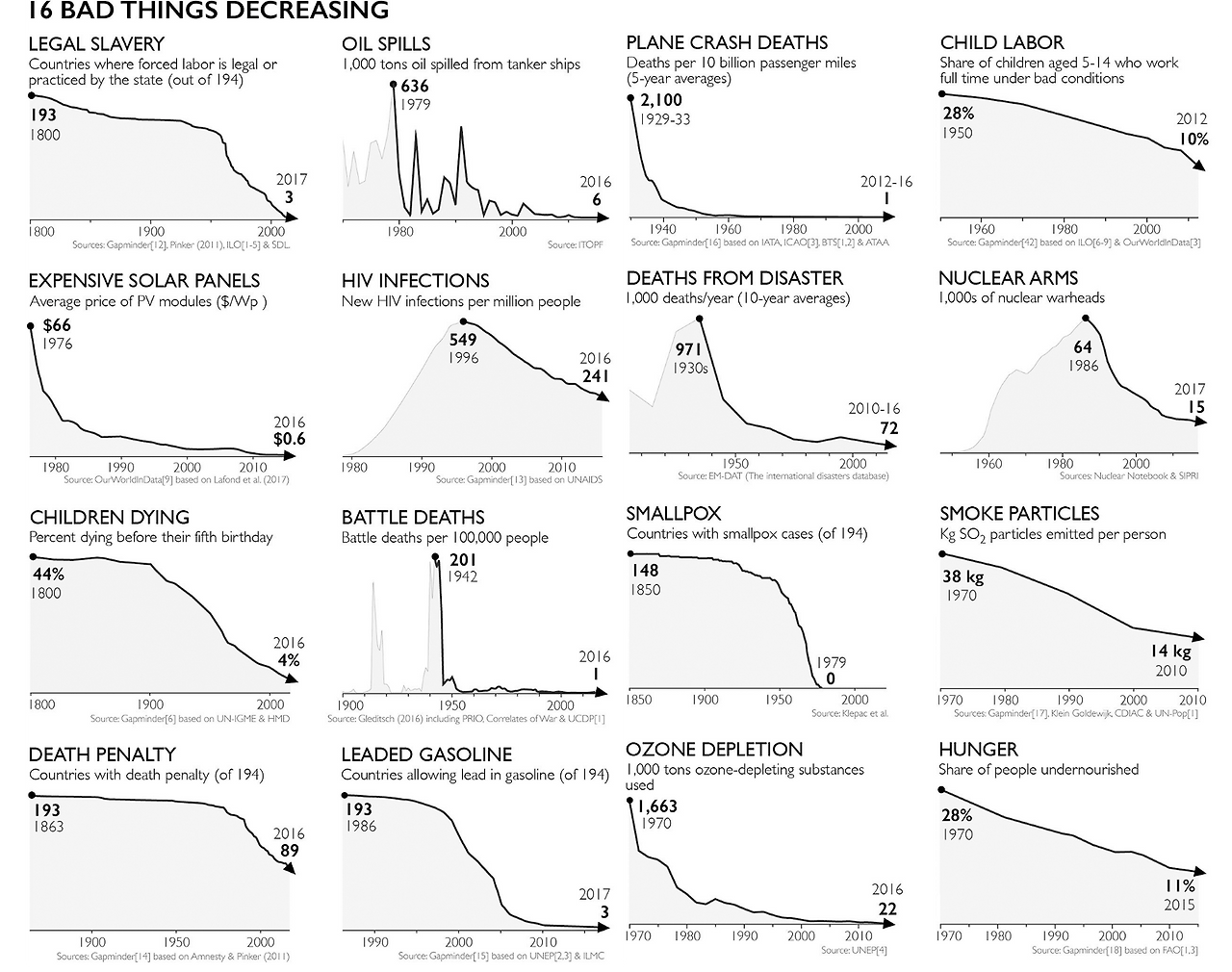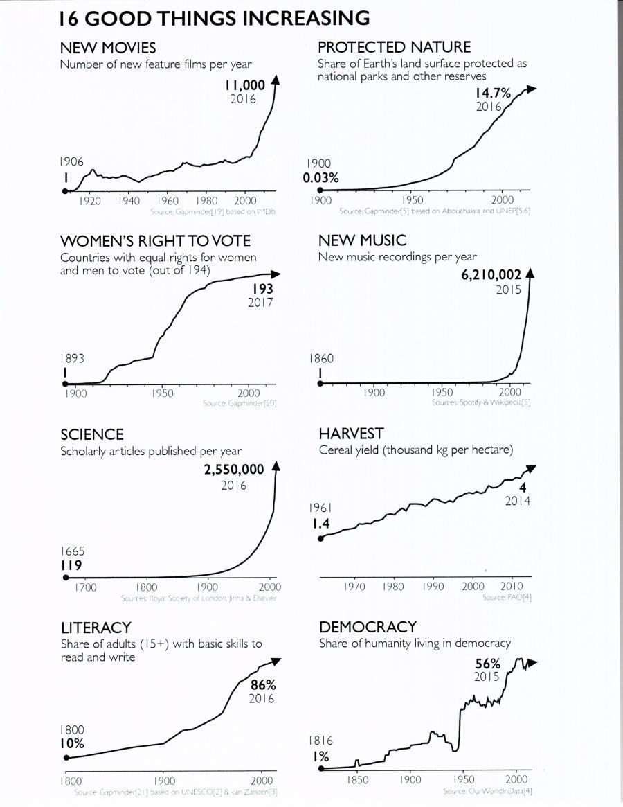 '사피언스의 미래'에 대한 낙관과 비관으로 맞붙었던 멍크디베이트 토론에서 스티븐 핑커가 주장했던 내용이 떠오릅니다. 일단 당시 리뷰에서 퍼온 10가지 긍정적 사실. 한스 로슬링의 이야기도 핑커의 주장에 닿아 있습니다. 문명이란게 긴 시계열에서 보면 이런거죠.