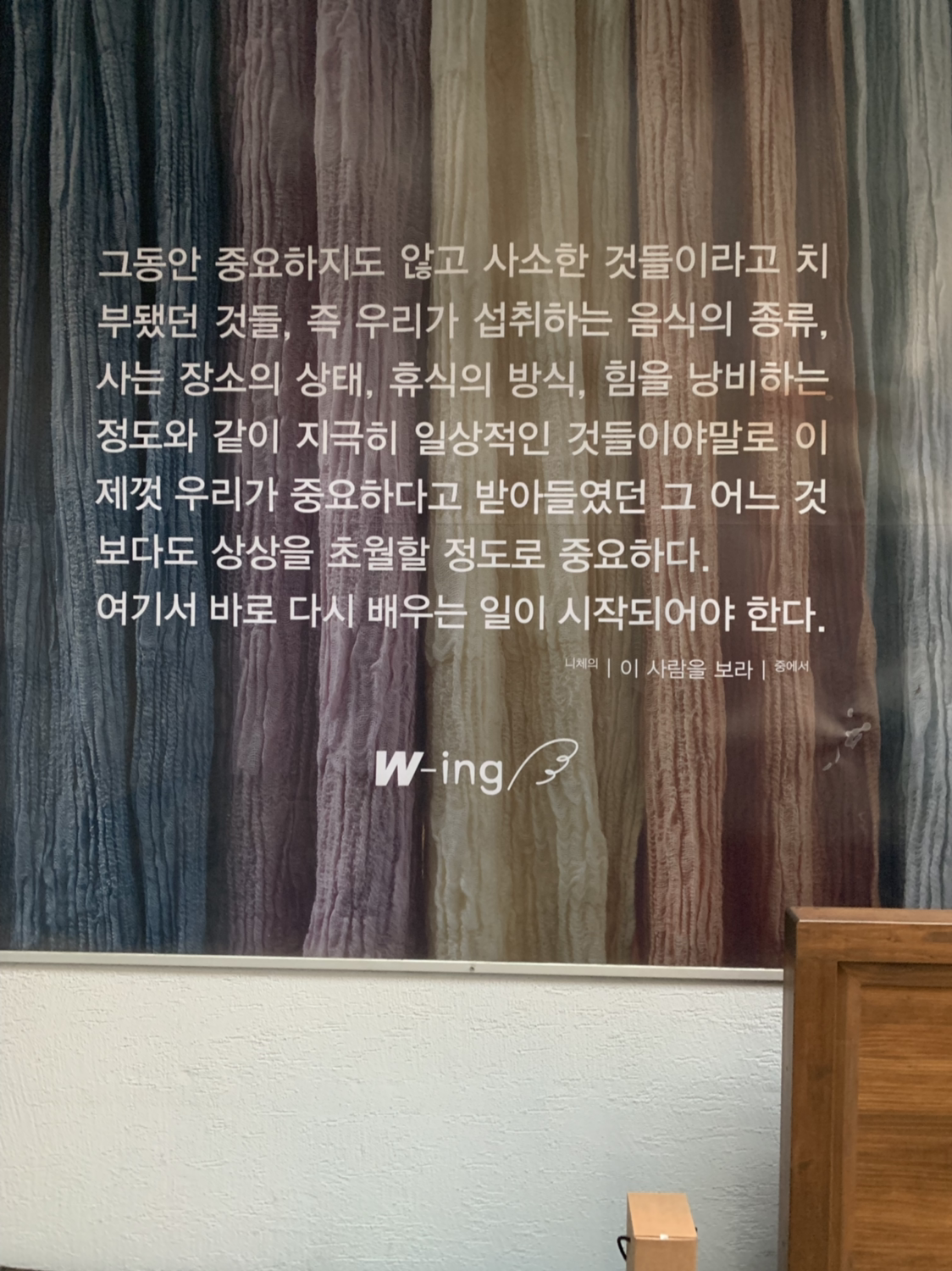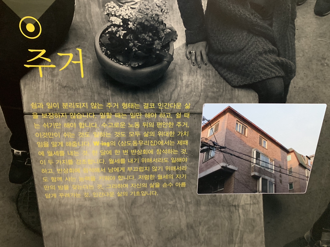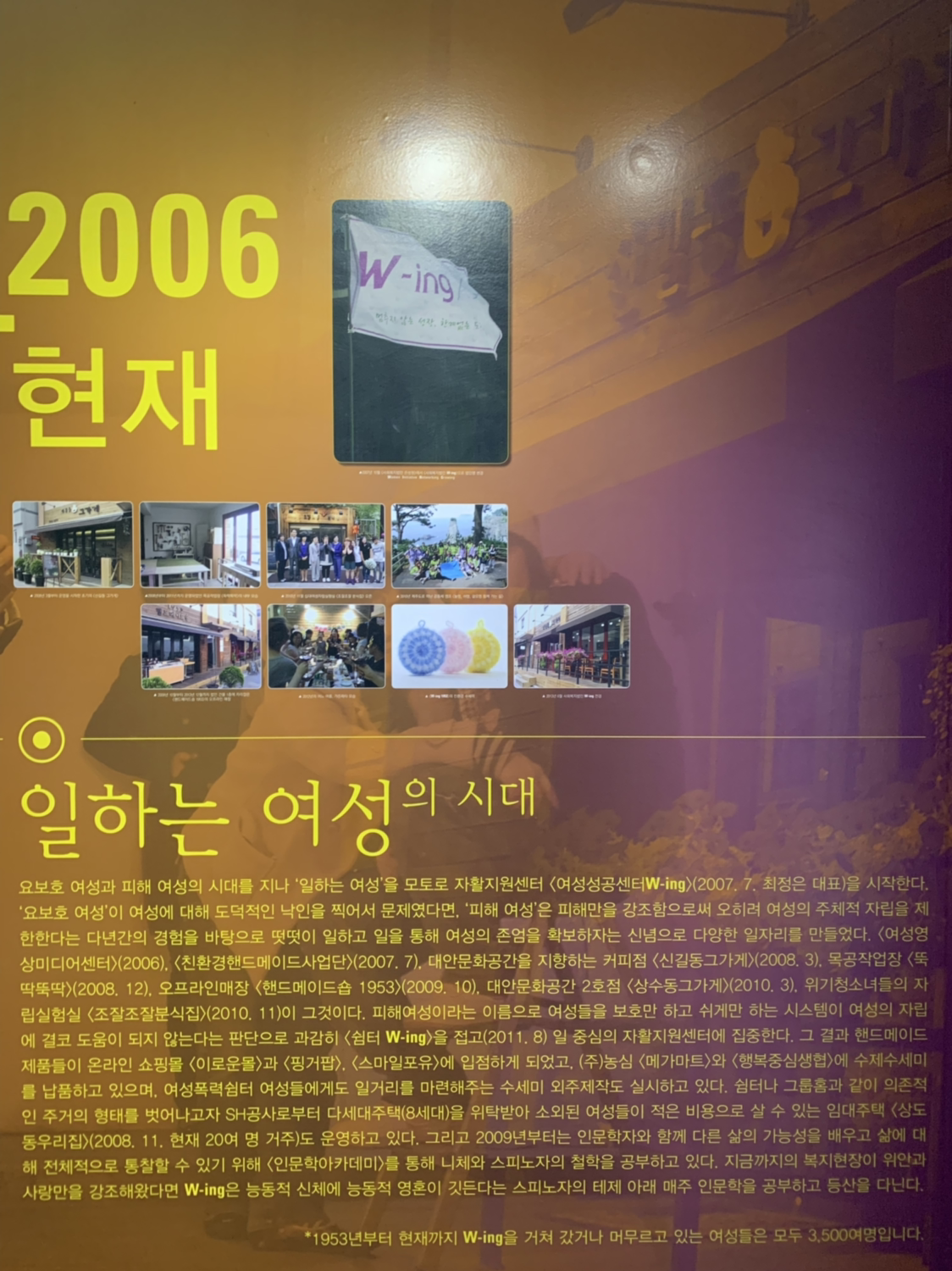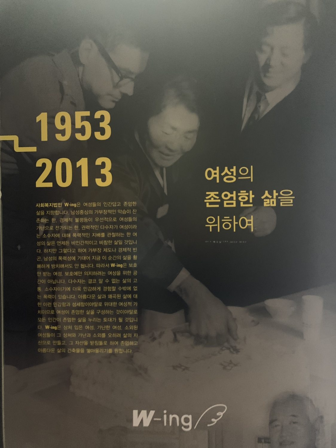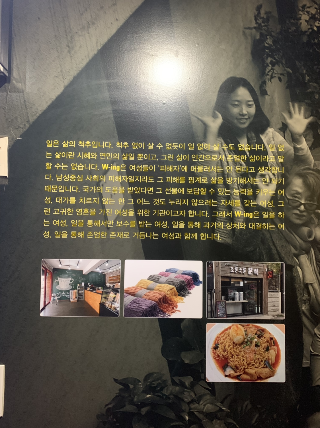 이 공간 자체의 사연을 뒤늦게 알았습니다. 지도에는 카페 ‘곁애’로 나오지만 사회복지법인 W-ing 은 여성들의 인간답고 존엄한 삶을 지향하는 곳. 1953년 무작정 상경한 여성들에게 이, 미용, 양재, 가정부교육 같은 훈련을 시작한 사회복지법인 은성원이 출발점. 미혼모 보호를 비롯해 가난한 여성, 소외된 여성들을 지원한 세월이 60년을 훌쩍 뛰어넘었고, 현재는 여성의 주체적 자립을 통해 ‘일하는 여성’을 돕습니다.